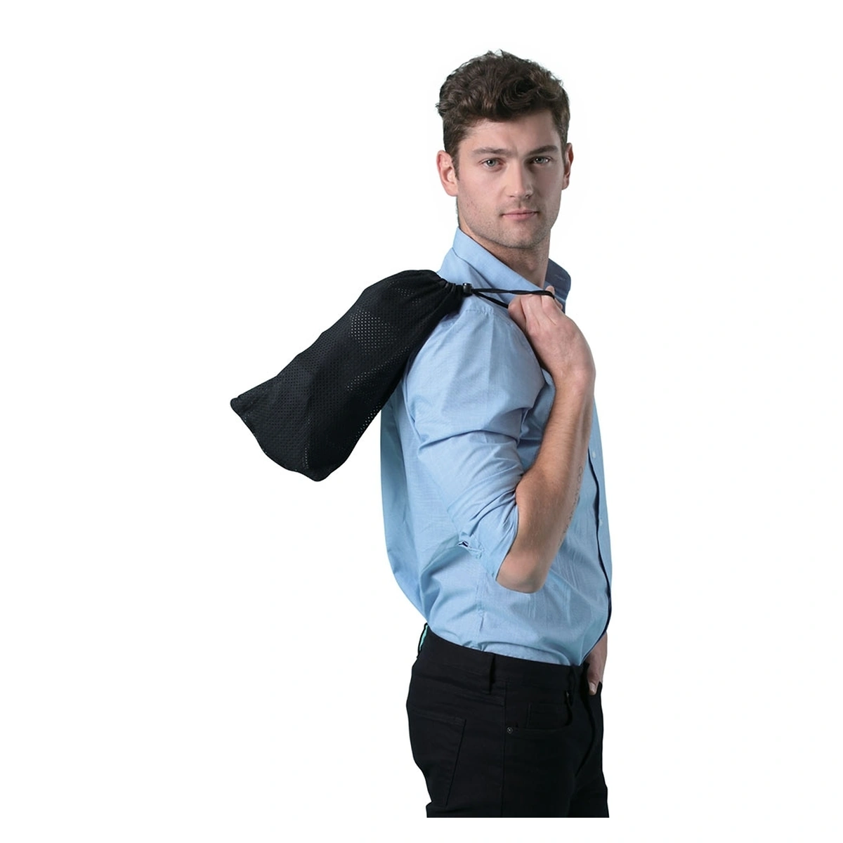 - Buzunarul mare poate fi intors pe dos si se transforma intr-o geanta de mana