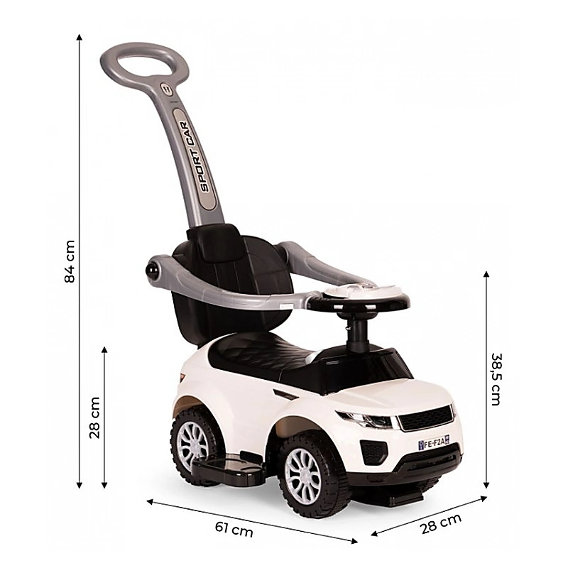 - Cand copilul creste manerul, protectia laterala si suportul de picioare poate fi detasat iar copilul va conduce singur din volan vehiculul