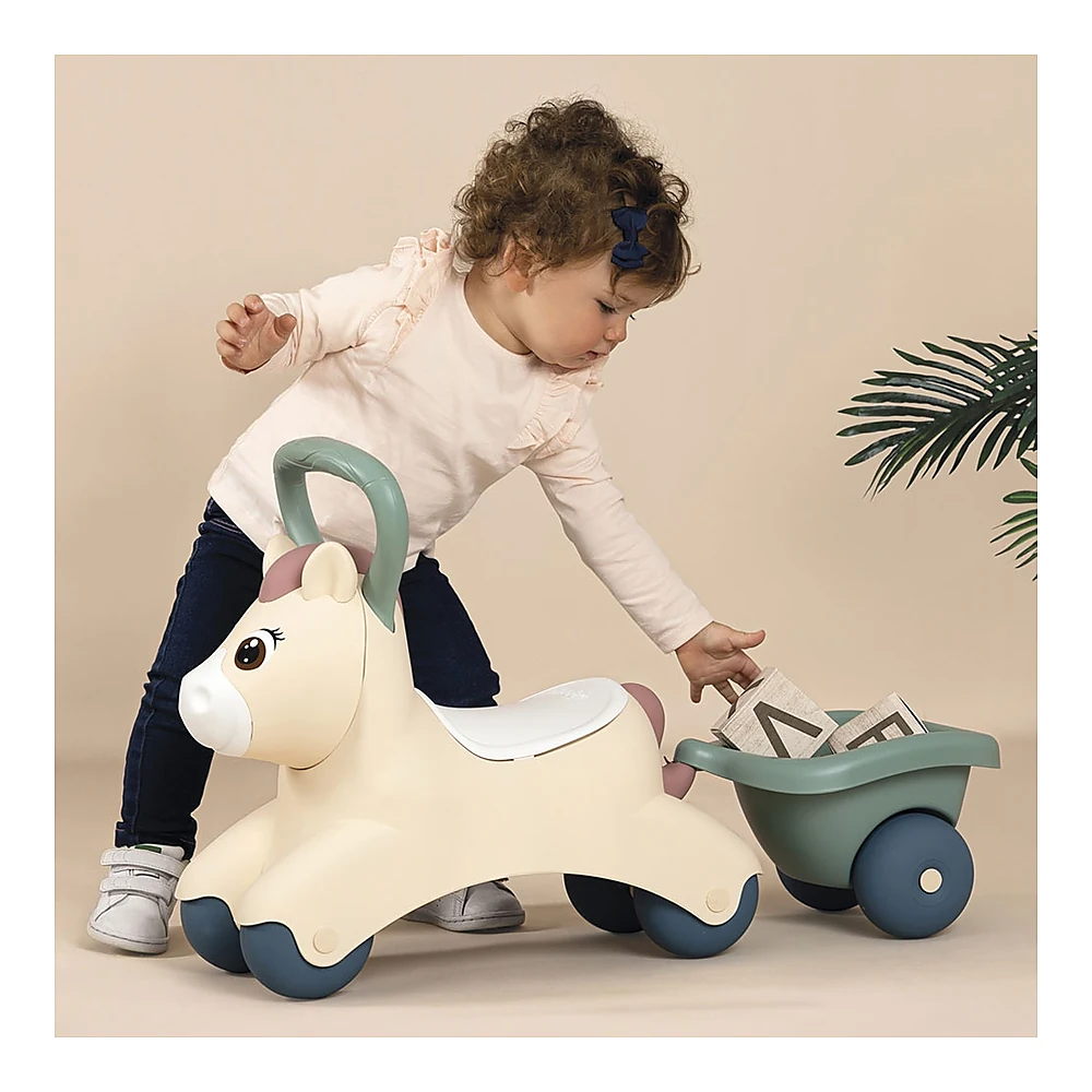 - Un fermecator ponei cu un scaun confortabil, maner si remorca pentru transportul obiectelor mici