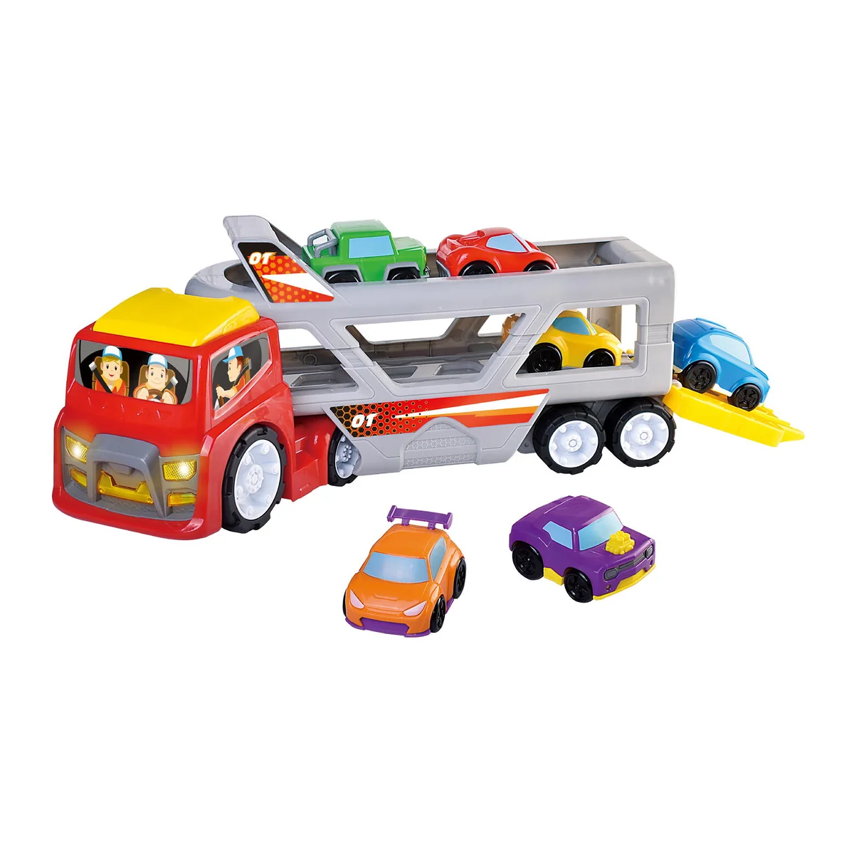 Camionul cu platforma auto este o jucarie interactiva cu lumini si sunete realiste, perfecta pentru a dezvolta imaginatia si abilitatile motorii fine ale celor mici.