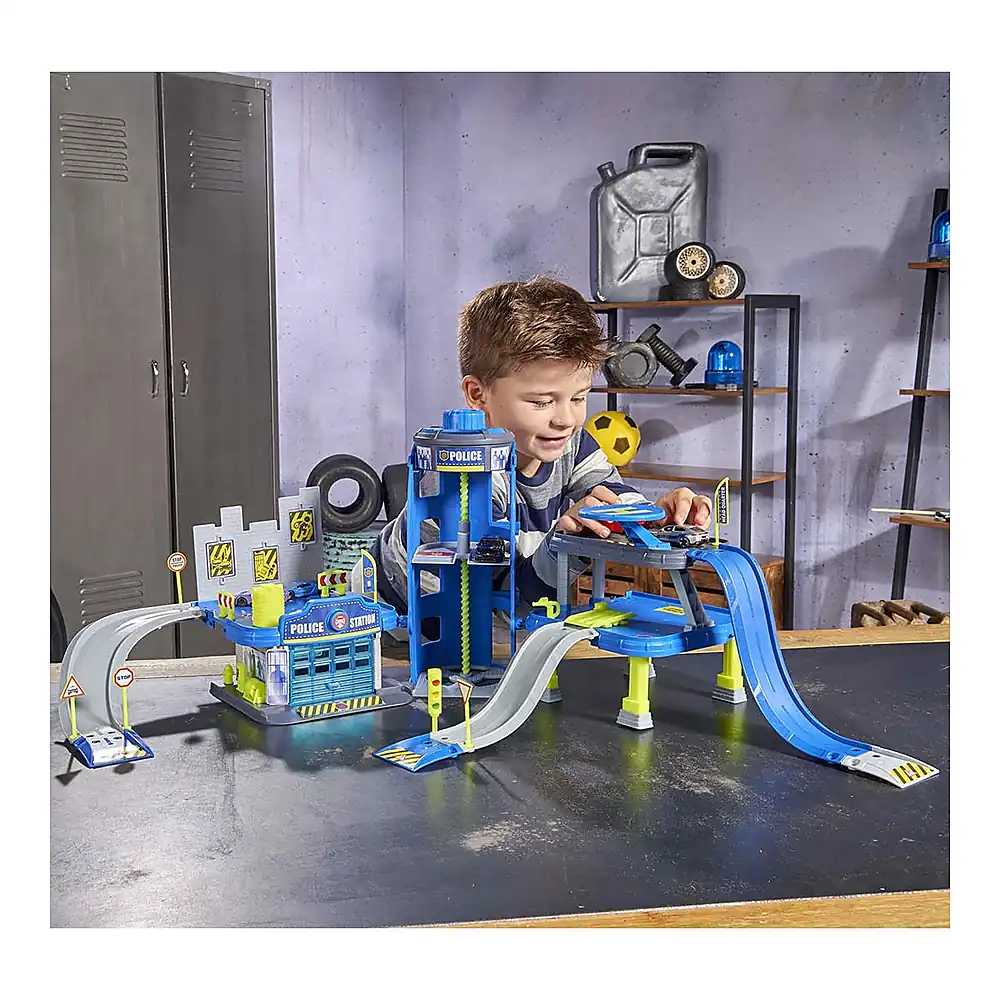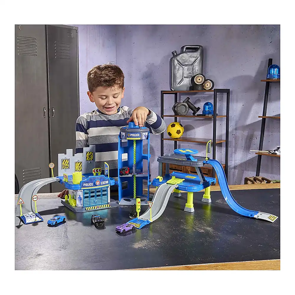 - Setul include cinci vehicule metalice: Porsche Panamera Police, Audi R8 Spyder, Ford GT, Lamborghini Aventador si Jeep Wrangler