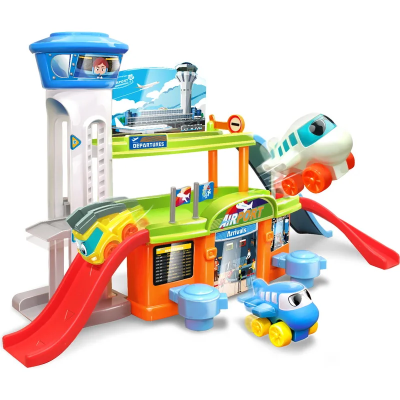 Pregateste-te de decolare! „Primul Meu Aeroport” este un set de joaca interactiv si colorat, perfect pentru micii pasionati de avioane si aventuri aeriene