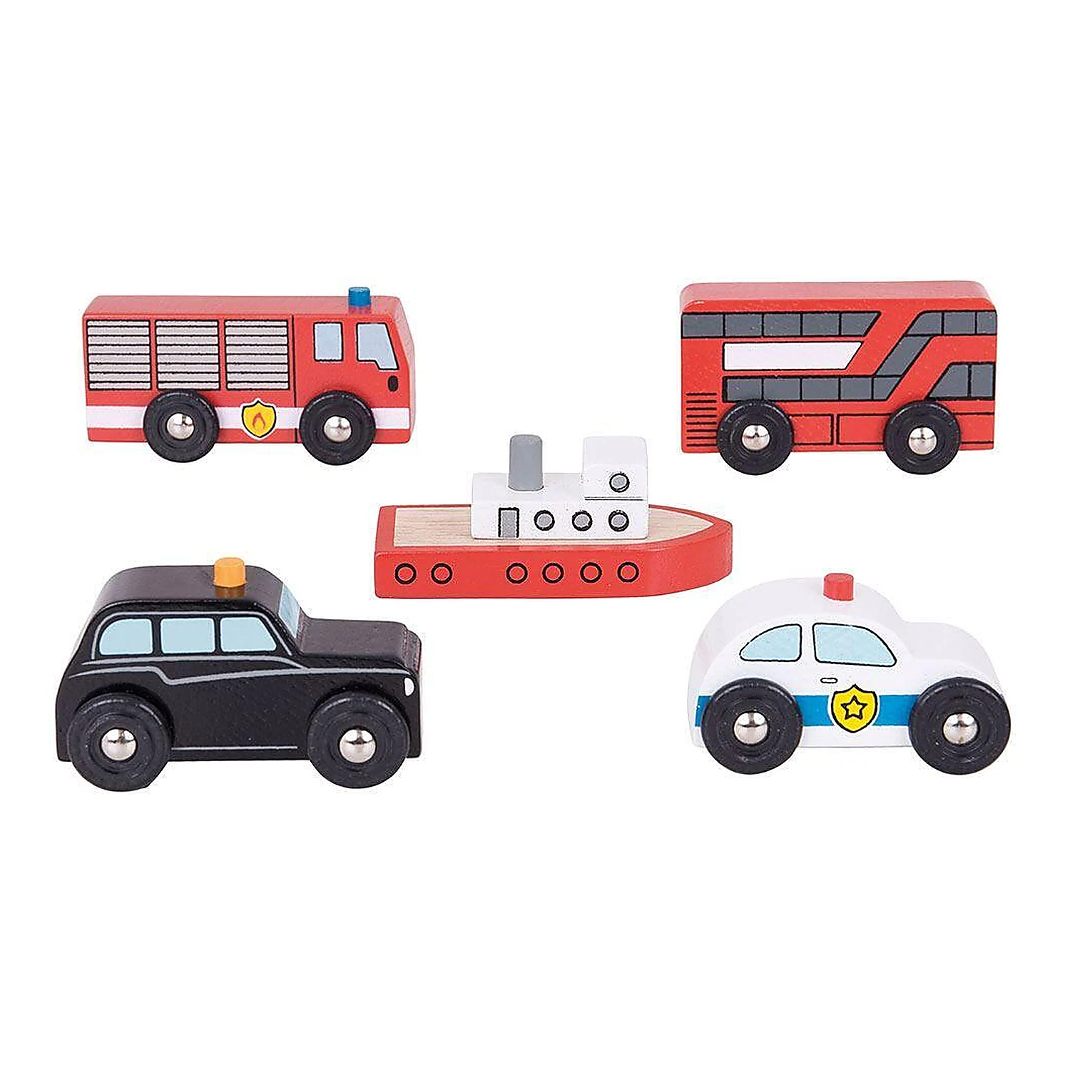 Atunci nu trebuie sa iti lipseasca acest set de vehicule de la BigJigs, care conține 5 mijloace de transport.