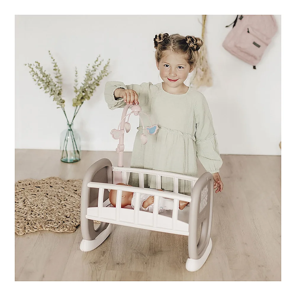 • Leaganul pentru papusa Smoby Baby Nurse cu carusel de la producatorul frantuzesc Smoby este o jucarie de calitate, leagan si patut in acelasi timp fiind potrivit pentru o papusa cu o marime maxima de 42 cm