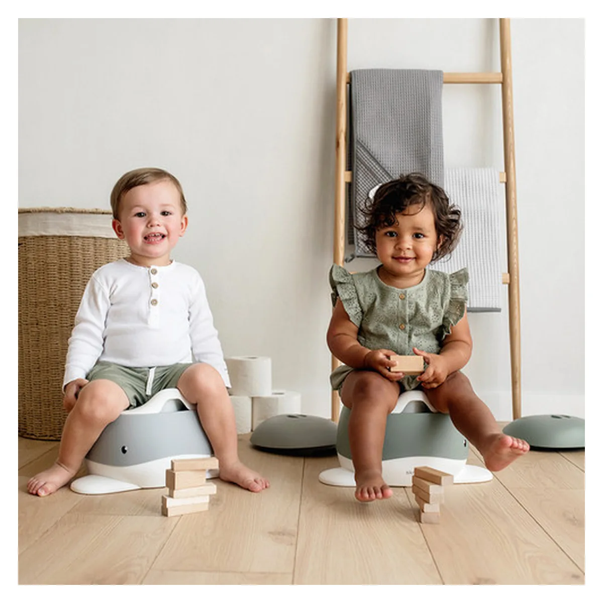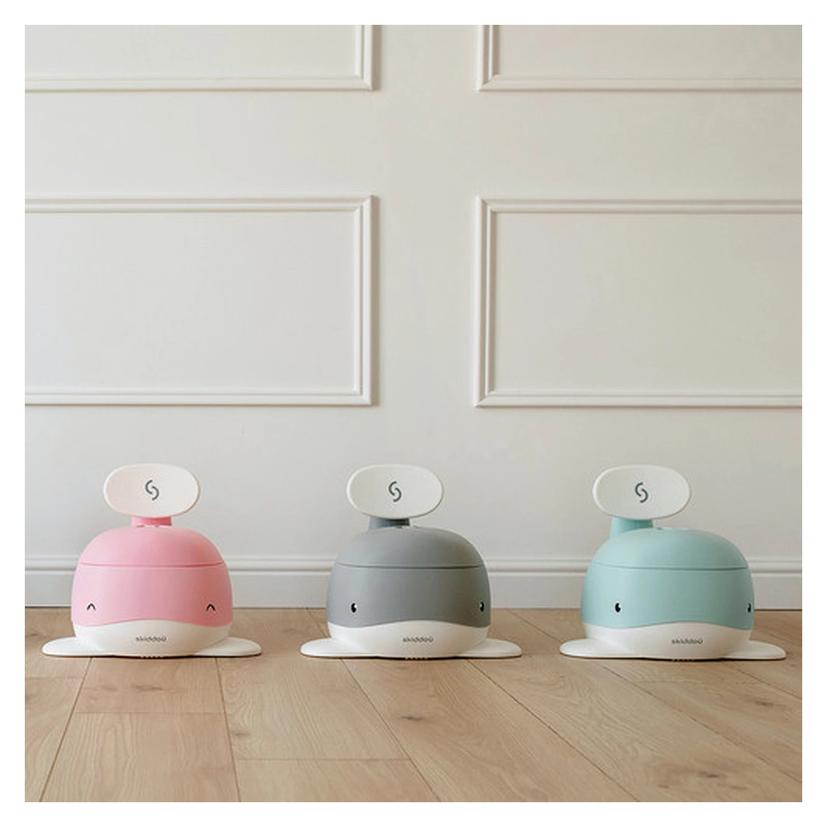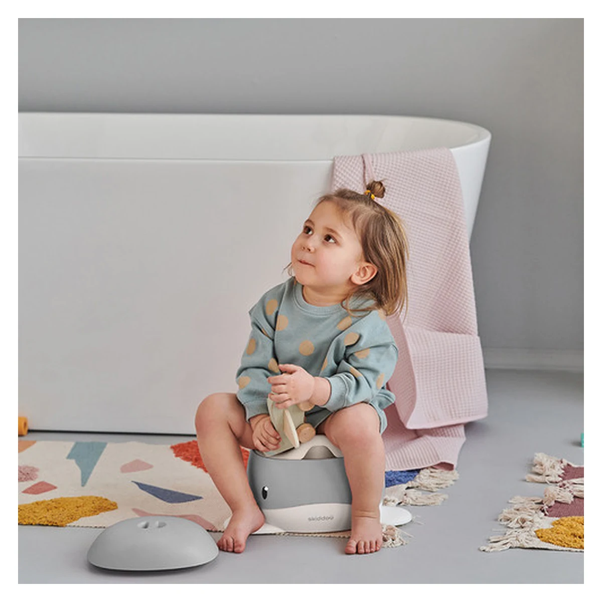 Olita pentru copii Pottili cu capac in forma de balenuta de la Skiddou este ideala pentru realizarea cu usurinta a tranzitiei de la scutec la toaleta pentru adulti, reprezentand etapa intermediara acestora.
