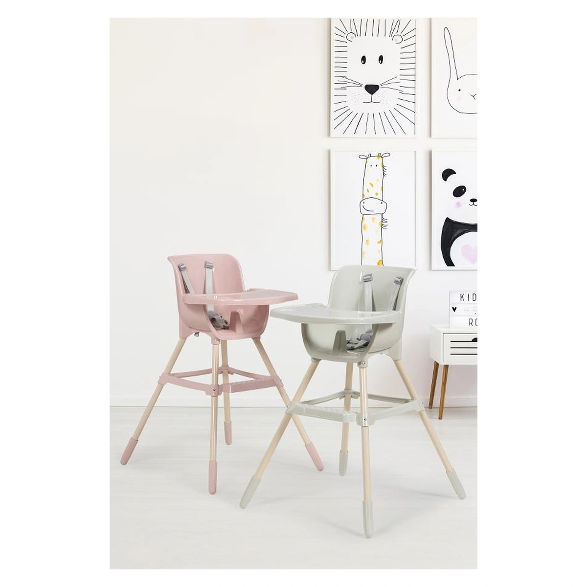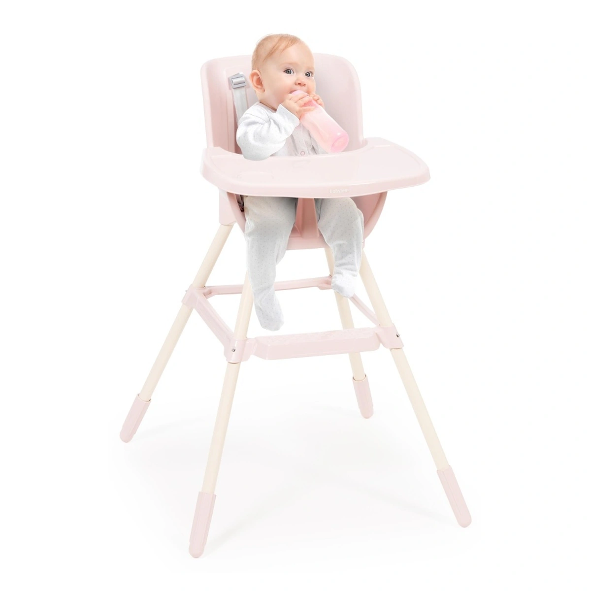 Stil minimalist, dar oferă confort optim pentru bebeluș în timpul mesei.