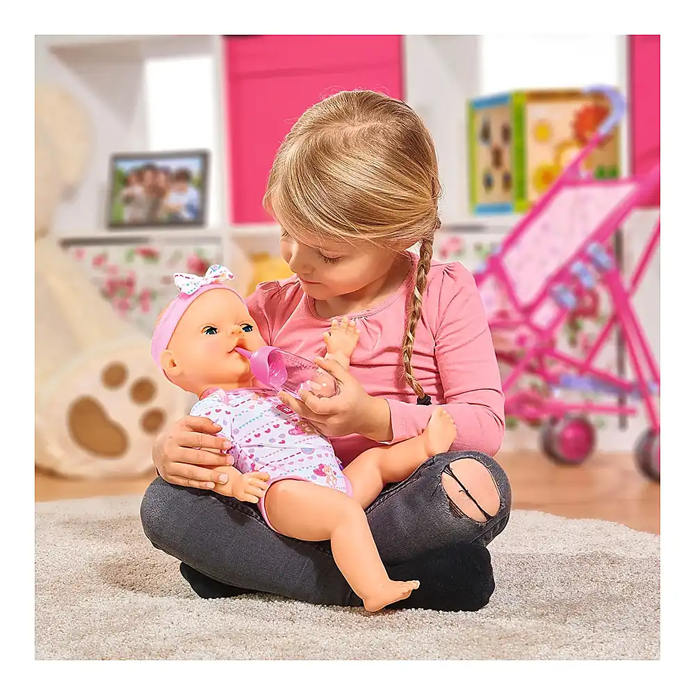 - Setul include tot ce este necesar pentru ingrijirea papusii. Poti s-o hranesti, sa-i dai o suzeta, sa-i schimbi scutecul si s-o pui pe olita