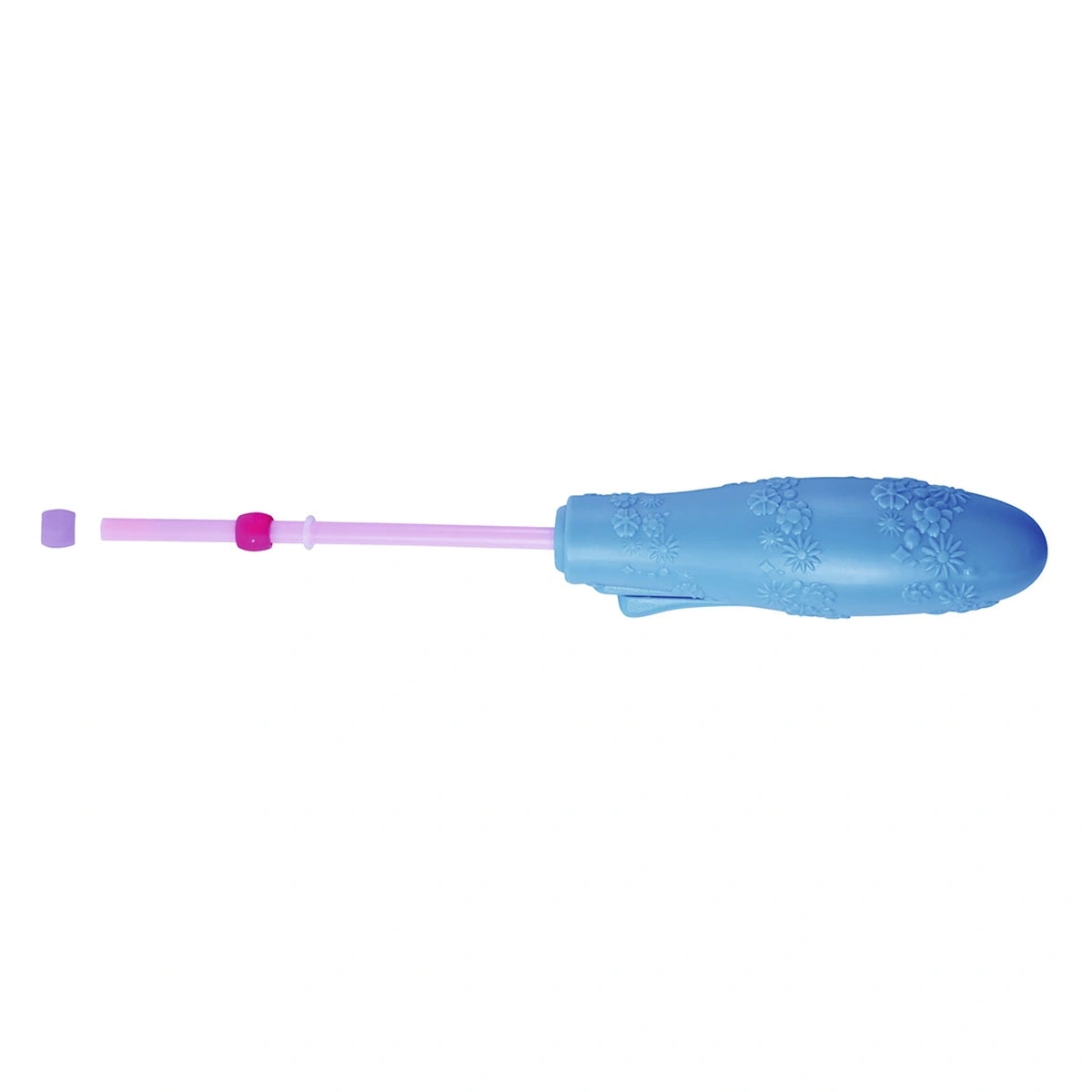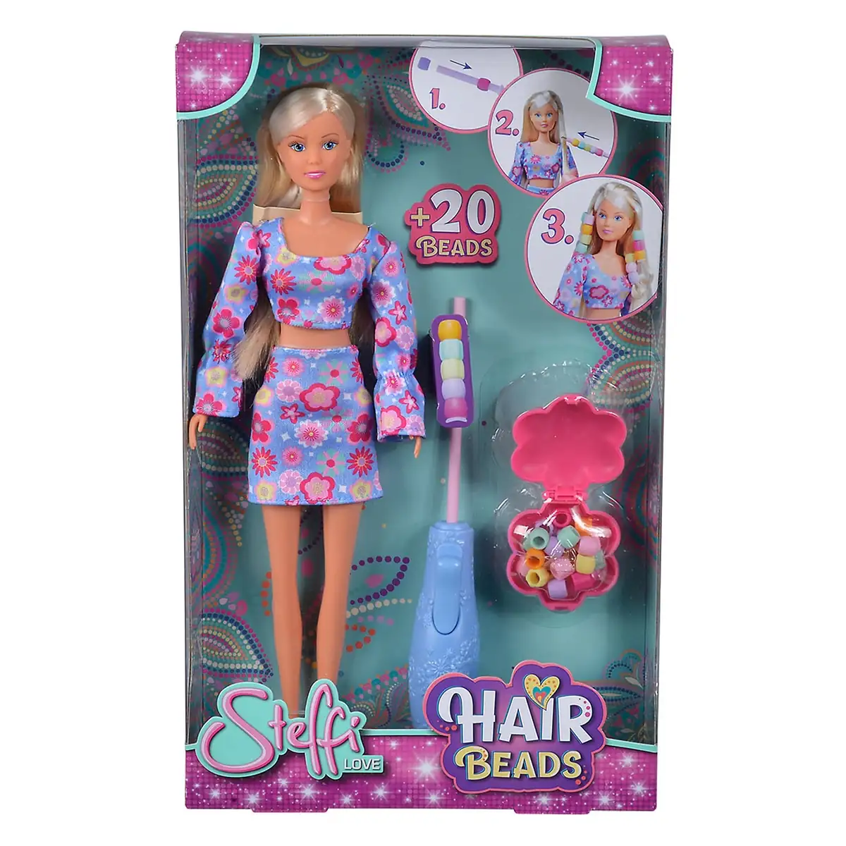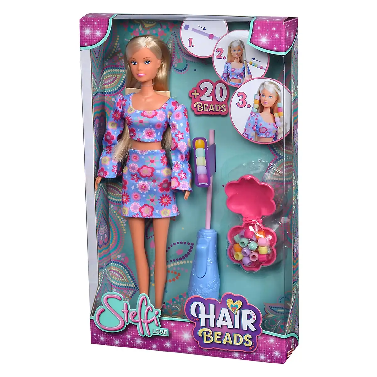 Cu betisorul de perle isi pune perle colorate in par. Pentru a face acest lucru, atasati mai intai o tija de cauciuc, apoi margelele pe tija, trageti capatul tijei si impingeti margelele pe o suvita de par. Functioneaza si in parul copiilor
