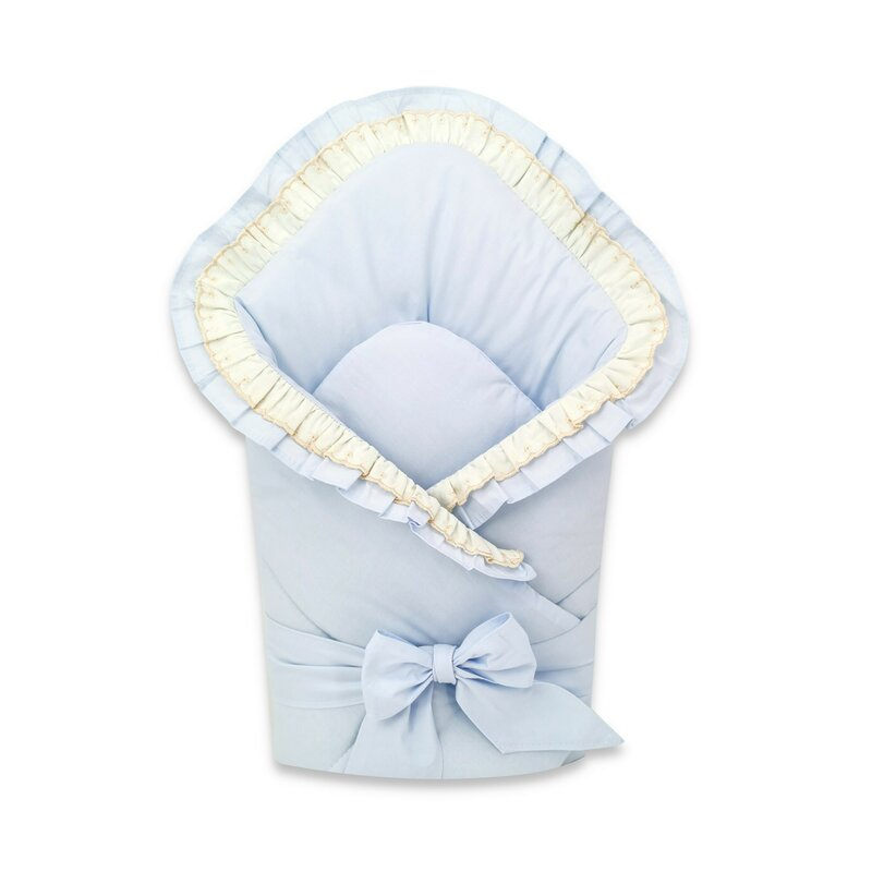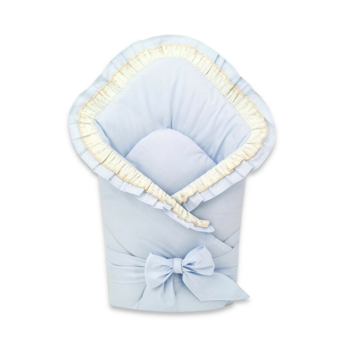 Paturica de infasat, MimiNu, 75x75 cm, Cu volanase si dantela, Cu inchidere cu panglica, bumbac, Blue
