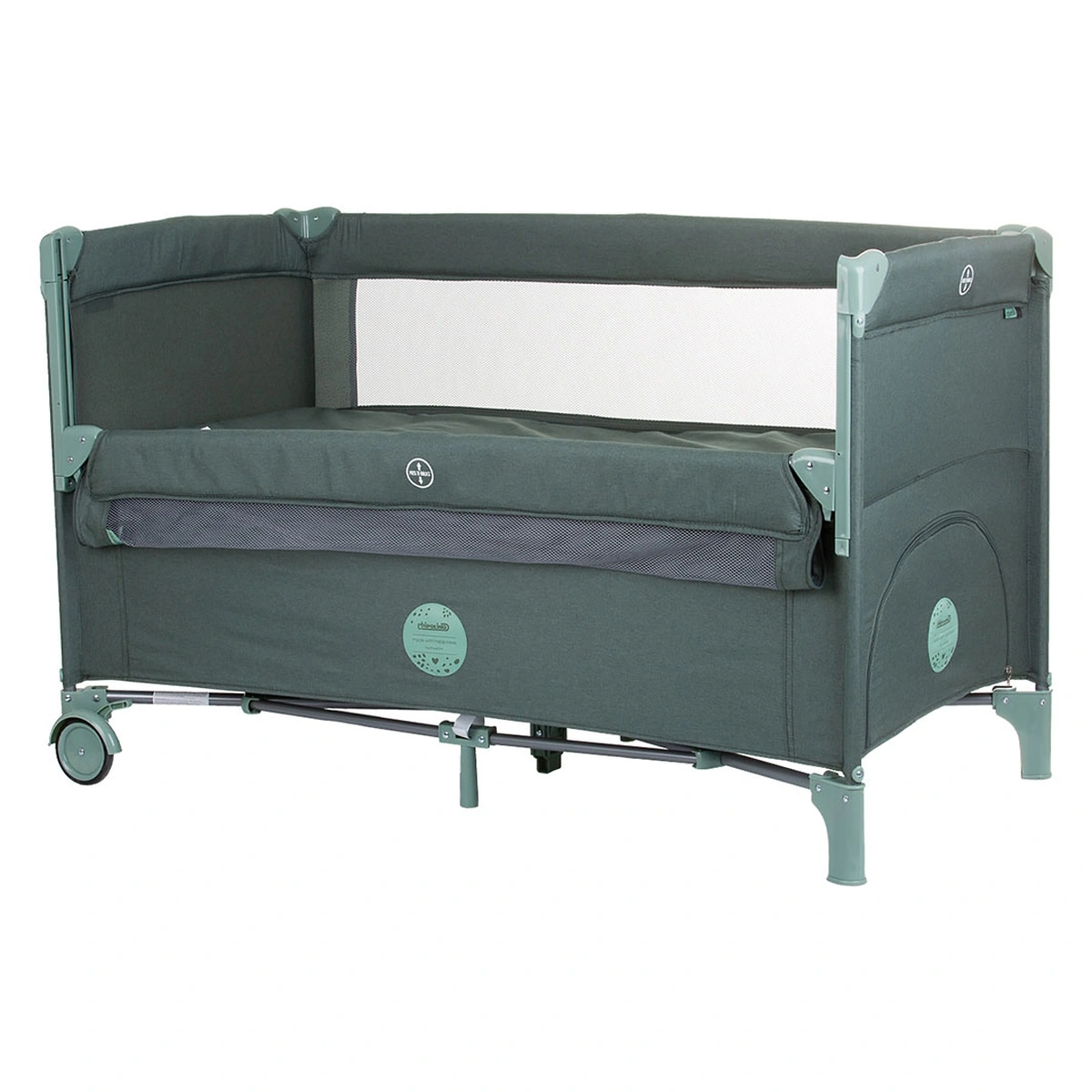 Patut prevazut cu sistem side-sleeping, pentru dormit aproape de copil
