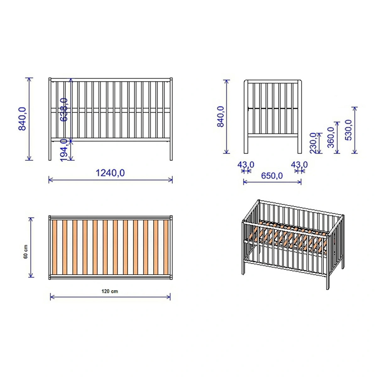 Dimensiune saltea necesara: 120x60 cm.