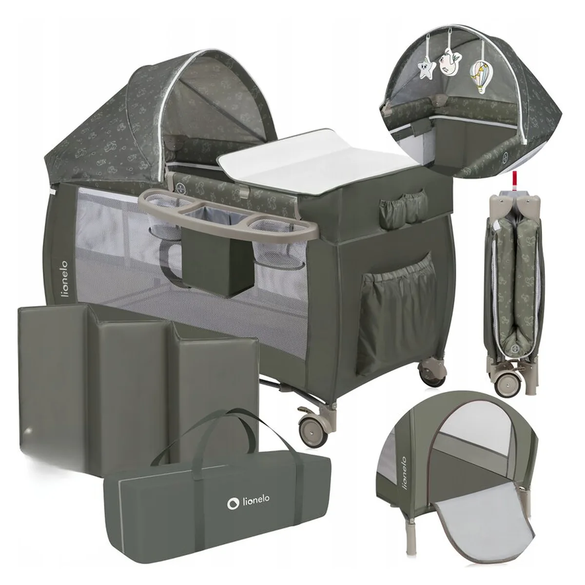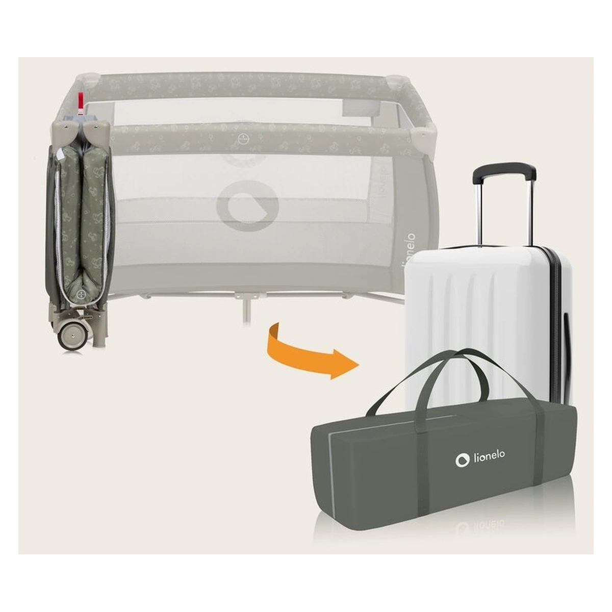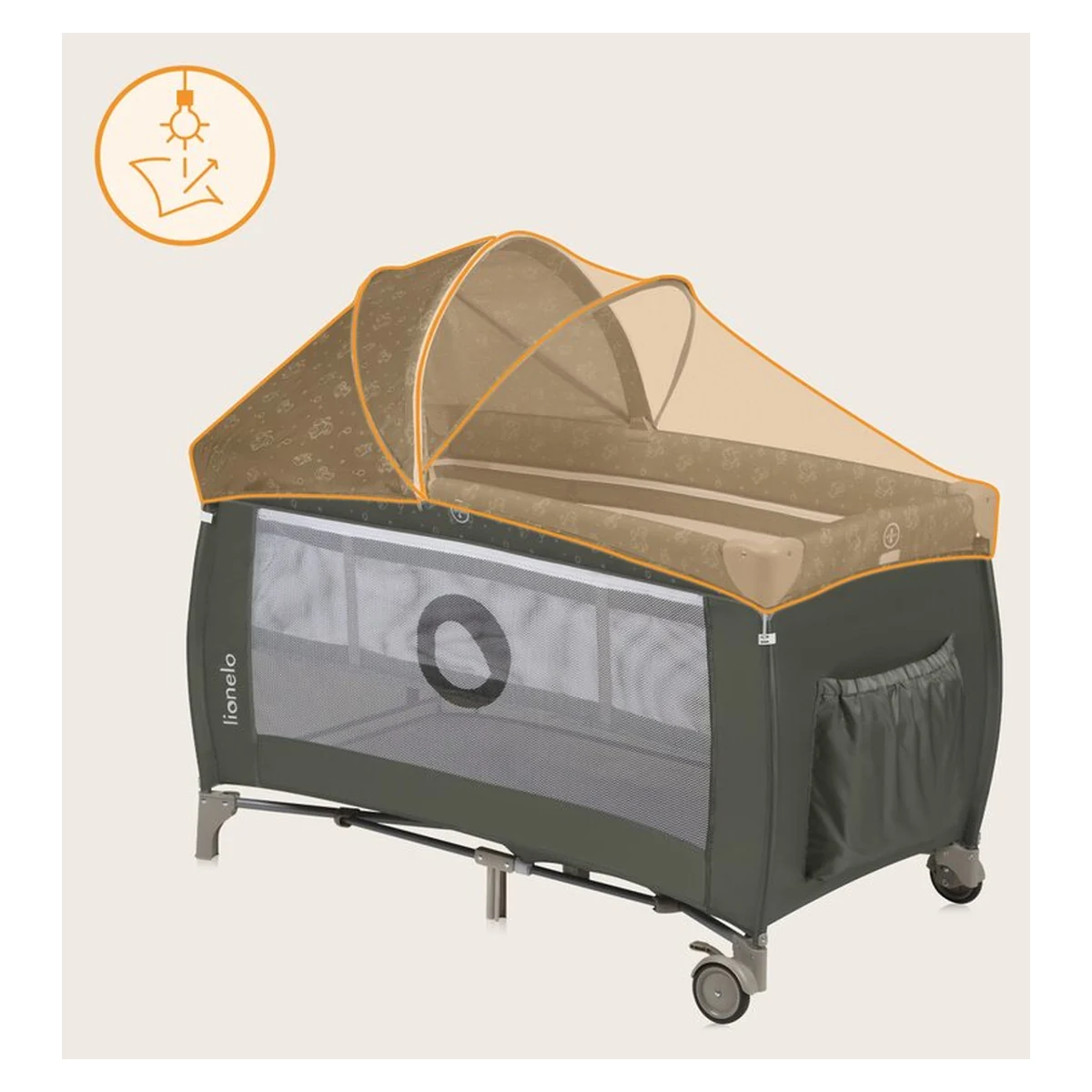 Patut pliant, Lionelo, Sven Plus, 120x60 cm, doua nivele, arcada jucarii, masuta de infasat, Bej Olive