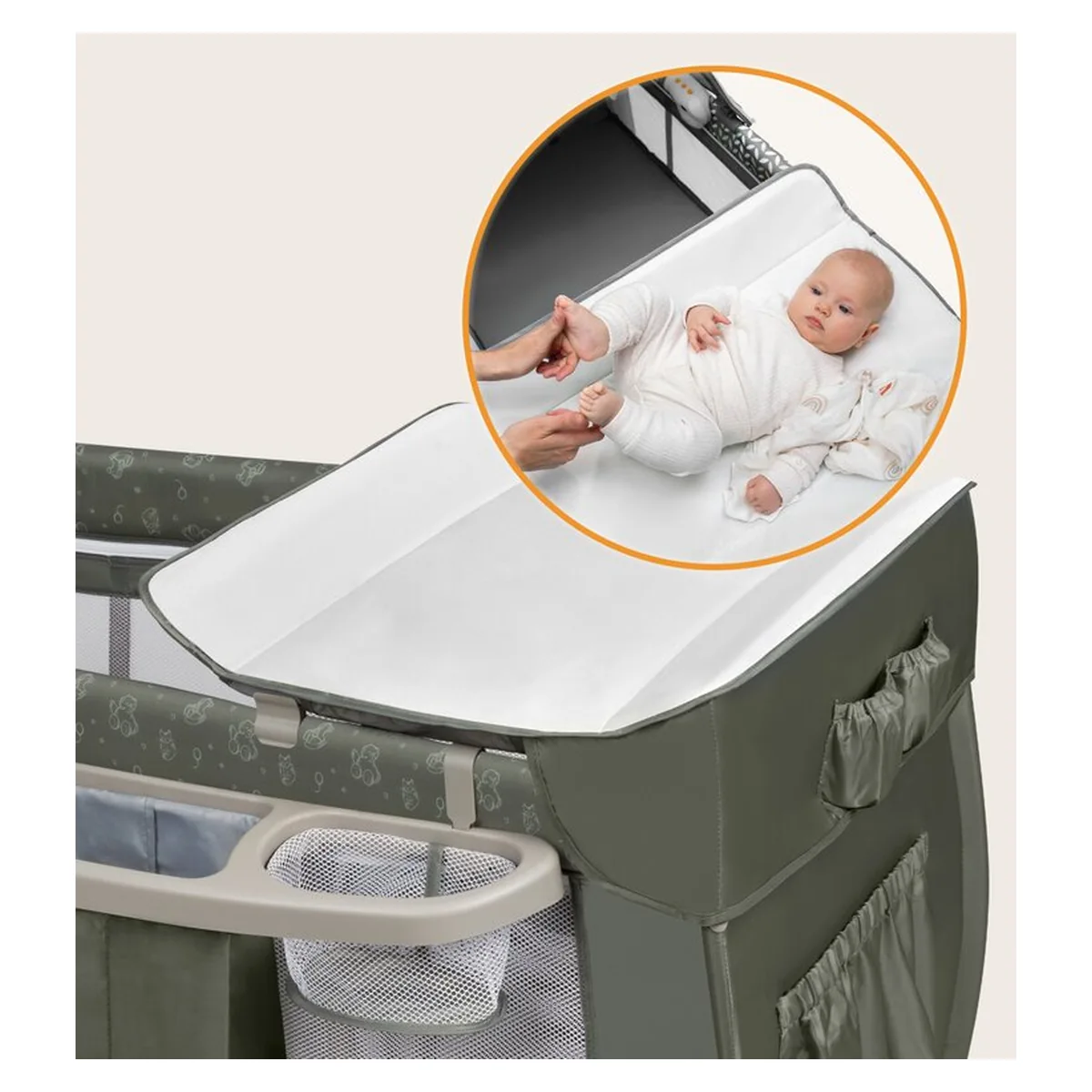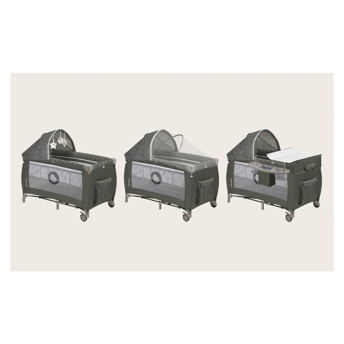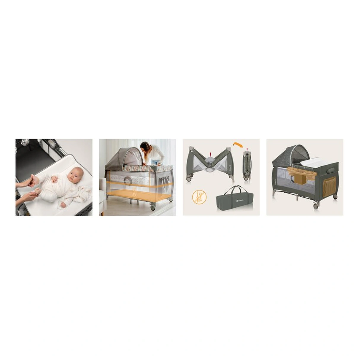Patut pliant, Lionelo, Sven Plus, 120x60 cm, doua nivele, arcada jucarii, masuta de infasat, Bej Olive