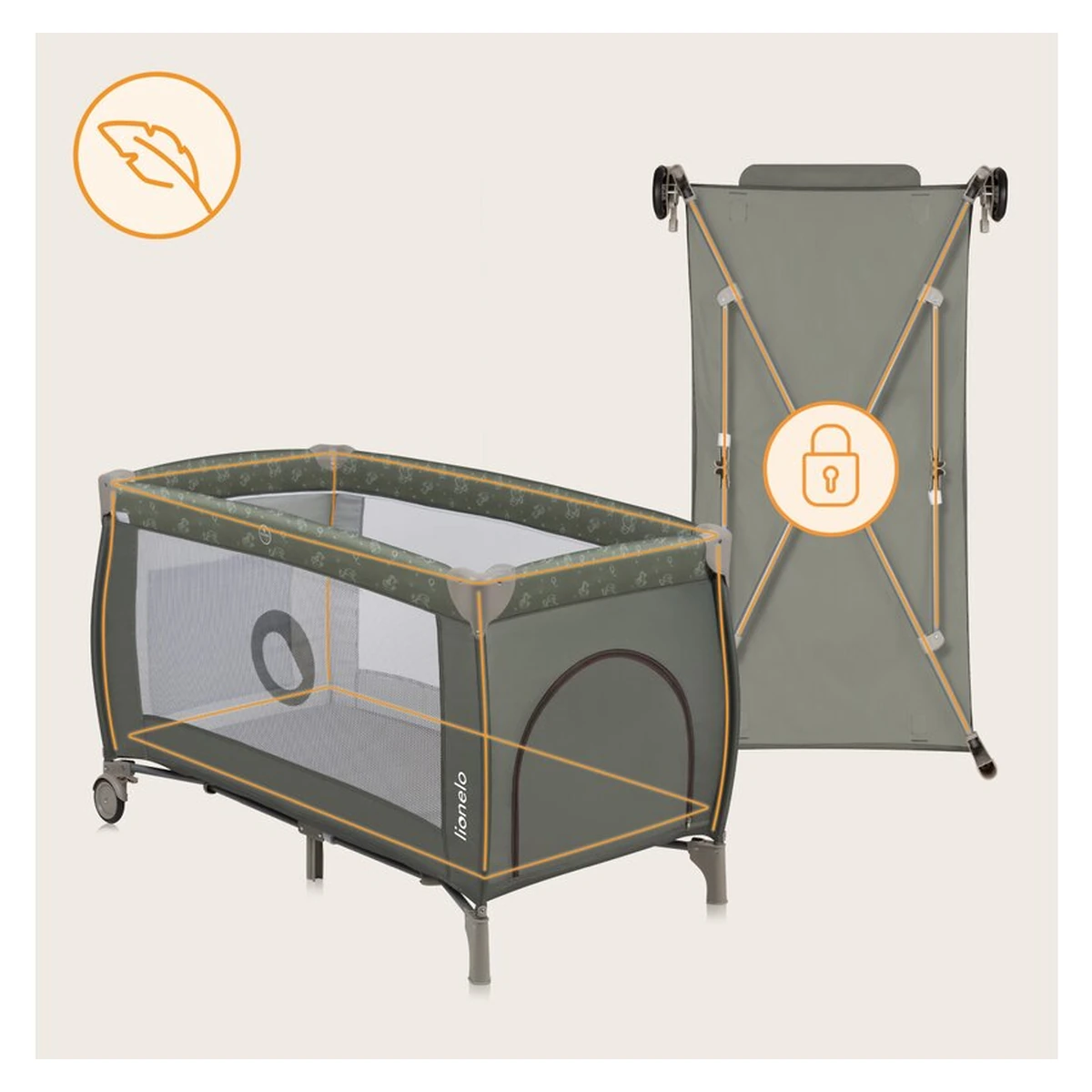 Patutul de voiaj Lionelo Sven Plus, varianta Beige Olive, combina intr-un singur produs patut de calatorie si tarc de joaca. Datorita celor doua trepte de pozitionare a saltelei, este potrivit de la nastere si pana la 36 luni, sustinand pana la 15 kg. Accesoriile si solutiile integrate simplifica rutina zilnica a parintilor si sporesc confortul copilului.