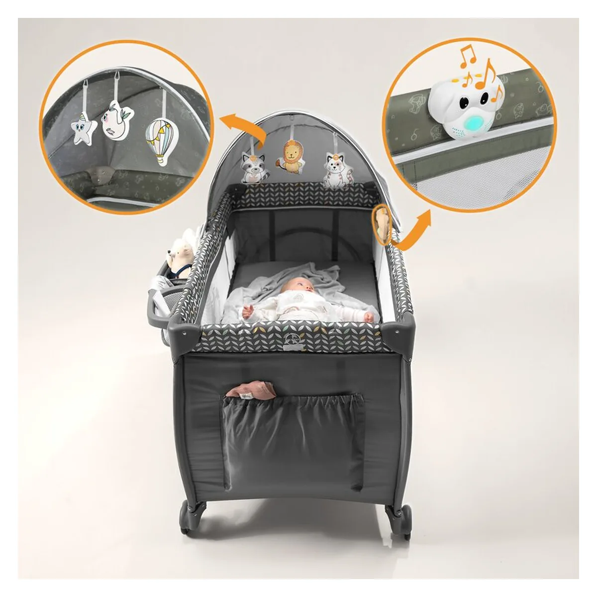 Organizare eficienta: organizatorul stabil cu 3 compartimente, agatat pe lateral, ajuta la ordine si acces rapid la cele necesare. Patutul dispune si de buzunare suplimentare utile, de exemplu pentru jucarii.