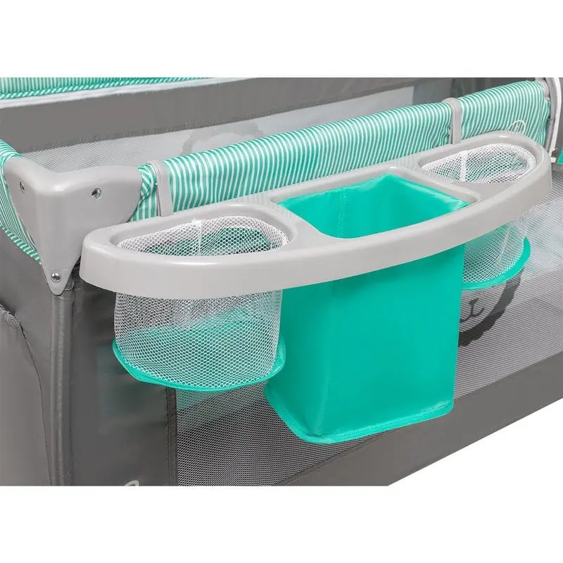Un organizator stabil, cu trei compartimente, agatat pe partea laterala a patului, ajuta la pastrarea lucrurilor ordonate si la indemana intotdeauna cele mai necesare accesorii pentru bebelus. Patul are si buzunare suplimentare utile, de ex. pentru jucarii.
