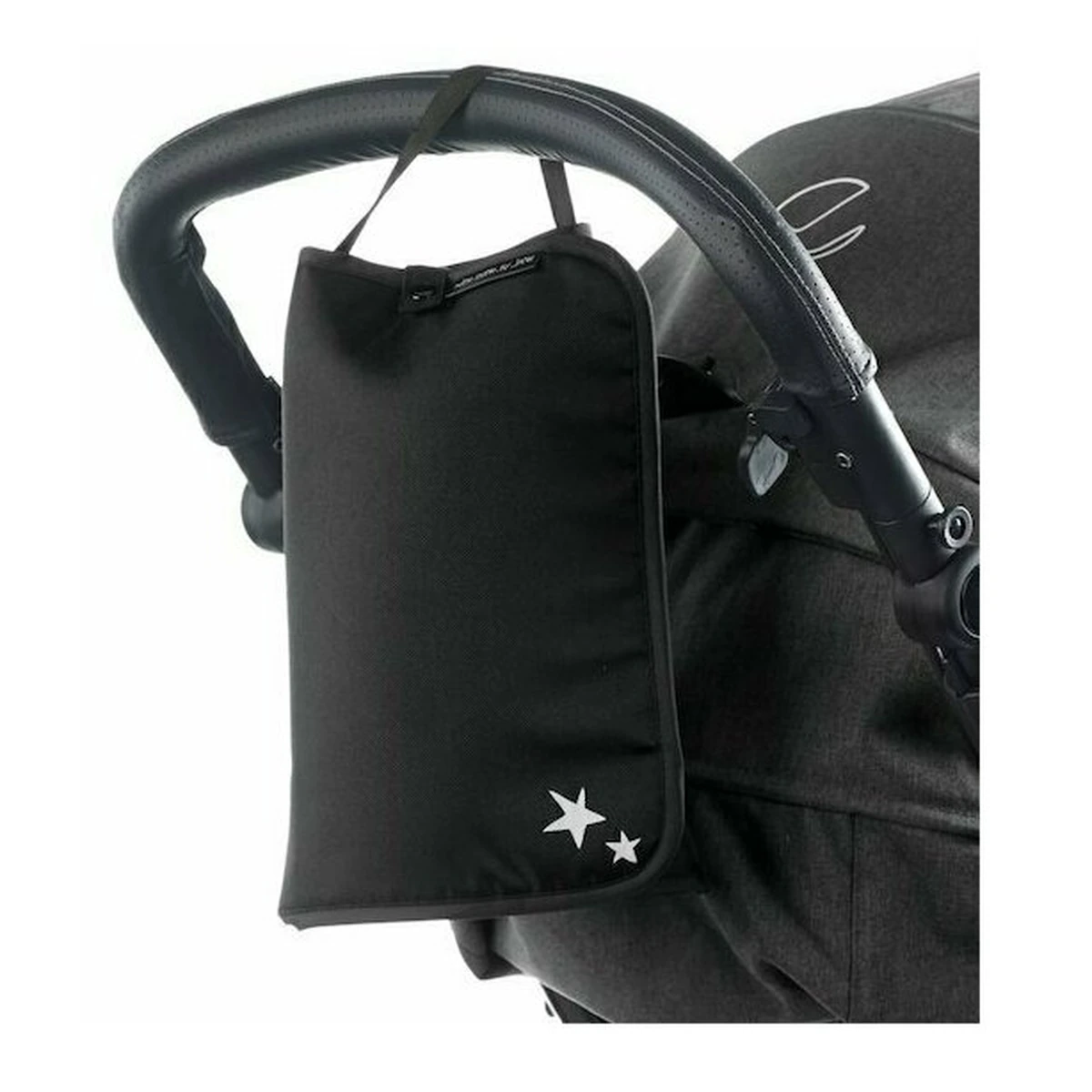Se ataseaza cu usurinta de manerele caruciorului datorita sistemului lateral de fixare.