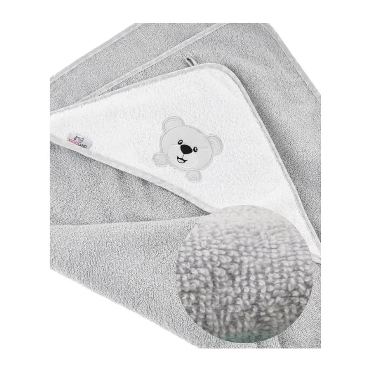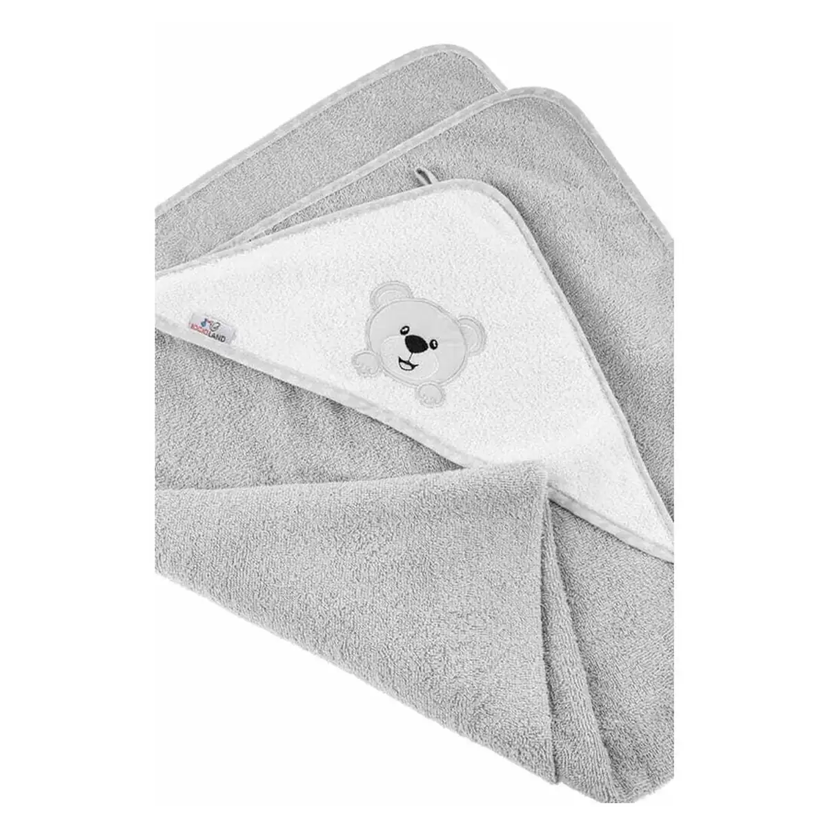 Bocioland Prosop de baie, Bocioland, Cu gluga, 100% bumbac, 80x80 cm, Teddy Bear, Grey