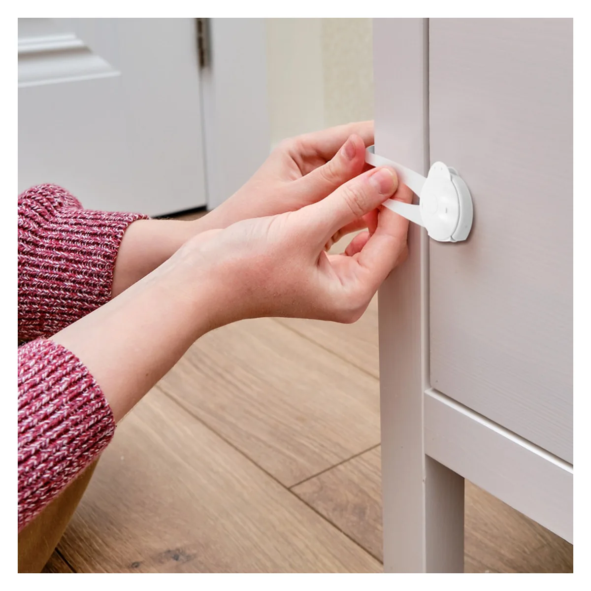 Siguranta multifunctionala flexibila pentru dulapuri mari poate fi folosita in multe locuri precum: dulapuri, sertare, scaune de toaleta, usi frigidere, usi glisante etc.
