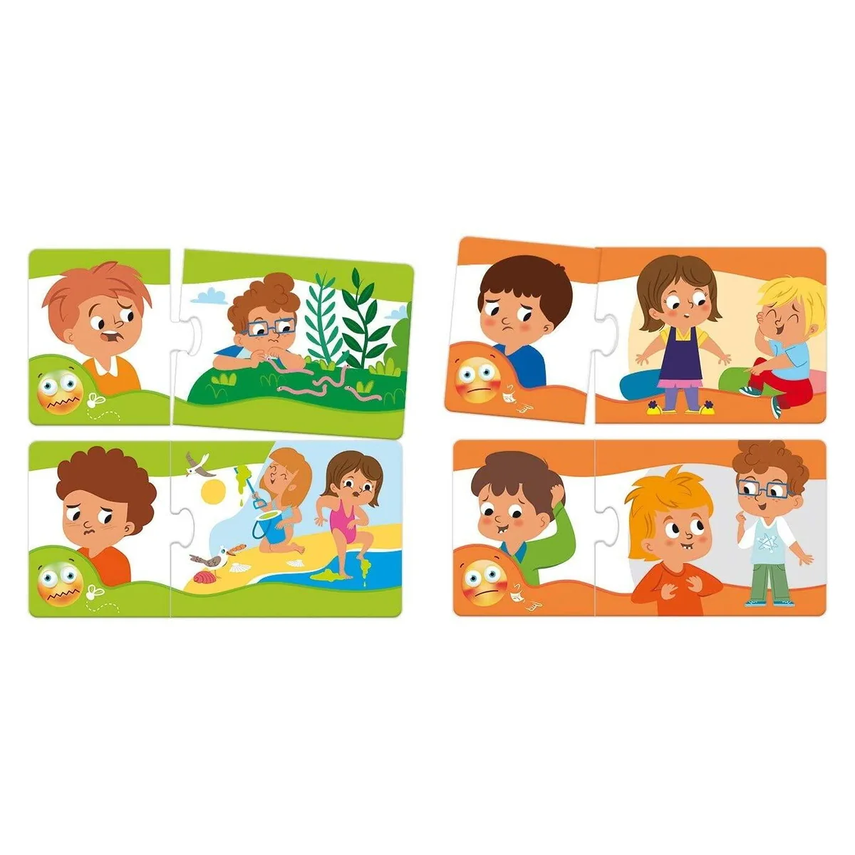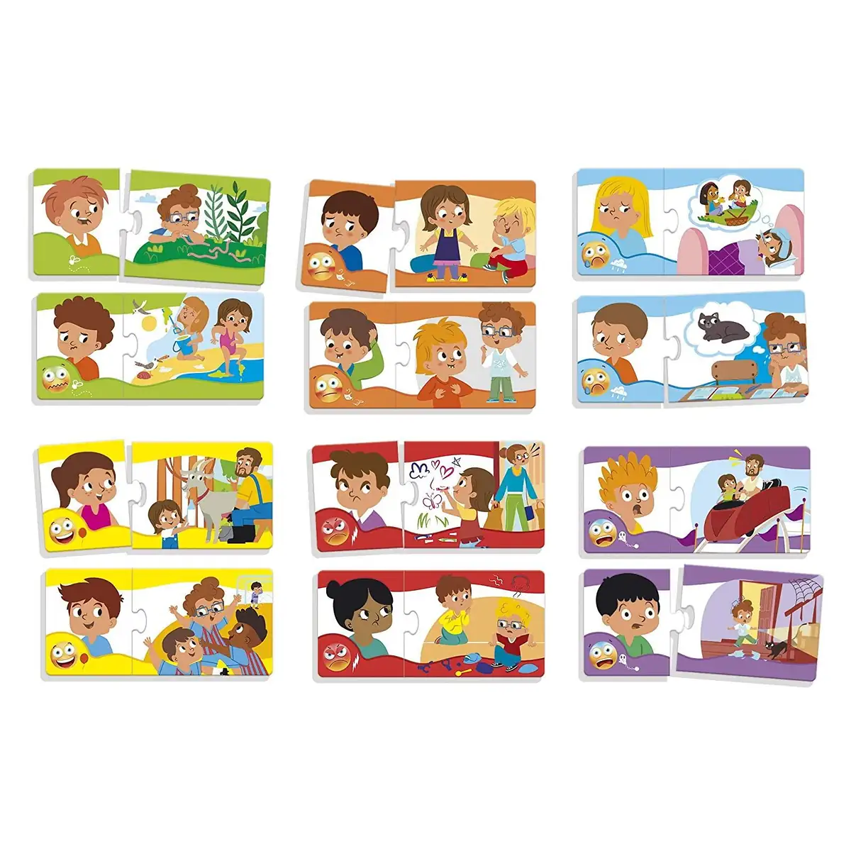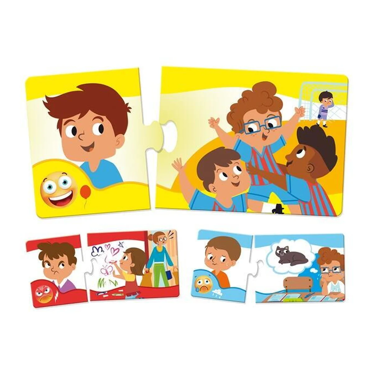 Descopera impreuna cu cei mici lumea emotiilor intr-un mod captivant si educativ cu ajutorul acestui set de puzzle-uri distractive! Conceput special pentru a stimula imaginatia si intelegerea emotiilor, acest joc ofera o modalitate interactiva de invatare si dezvoltare pentru copiii tai.