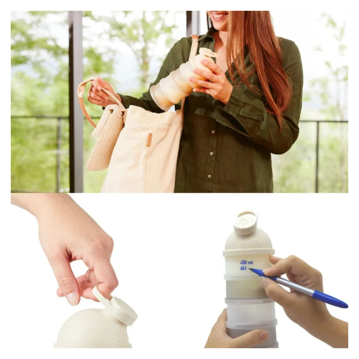 - Capacitate mare: Fiecare compartiment poate depozita pana la 12 masuri de lapte praf, suficient pentru biberonul bebelusului de pana la 360 ml.