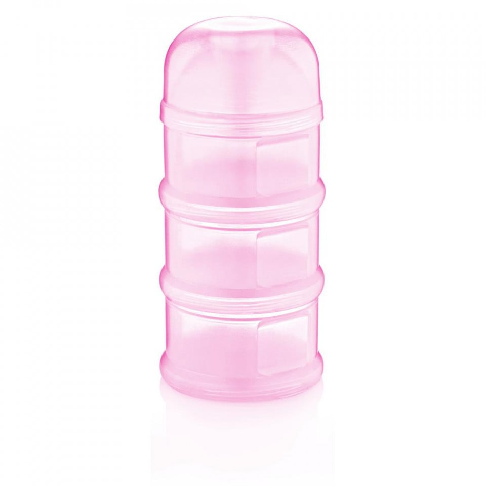 Este ideal atat pentru acasa cat si pentru calatorii: facand posibila prepararea usoara a unui biberon de lapte, prin simpla rasucire a capacului reipientului si varsarea dozei de lapte praf in biberon.