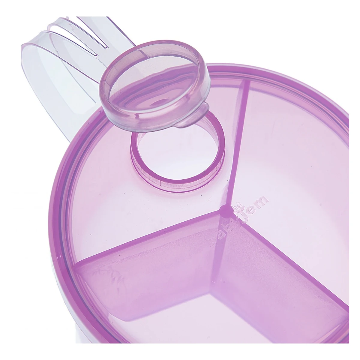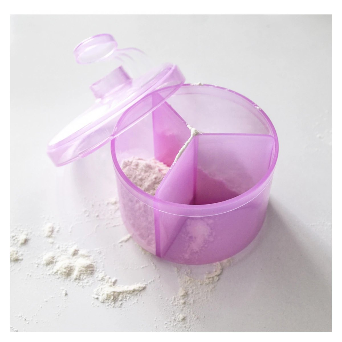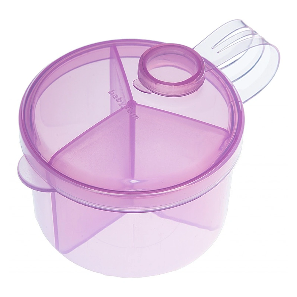 Este ideal atat pentru acasa cat si pentru calatorii: facand posibila prepararea usoara a unui biberon de lapte, prin simpla rasucire a capacului reipientului si varsarea dozei de lapte praf in biberon.