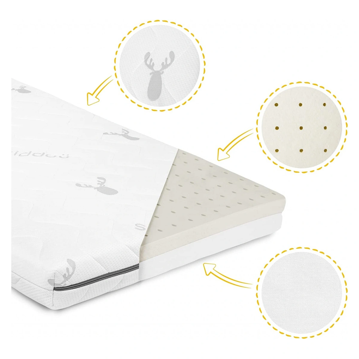 - are o husa detasabila din material multistrat, care poate fi spalata chiar si in masina de spalat la 60°C. Acest lucru permite eliminarea bacteriilor și microorganismelor care ar putea dăuna copilului.