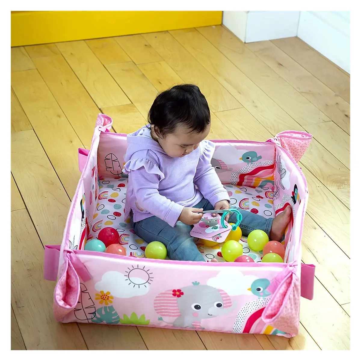 Joaca in etapa mersului in patru labe. In aceasta etapa salteluta se transforma intr-un ‘tunel’(prin inchiderea a doi pereti) prin care bebe va trece. Cea mai mare distractie este oferita de joaca cu bile, pe care le va arunca, iar apoi se va deplasa pentru a le prinde.