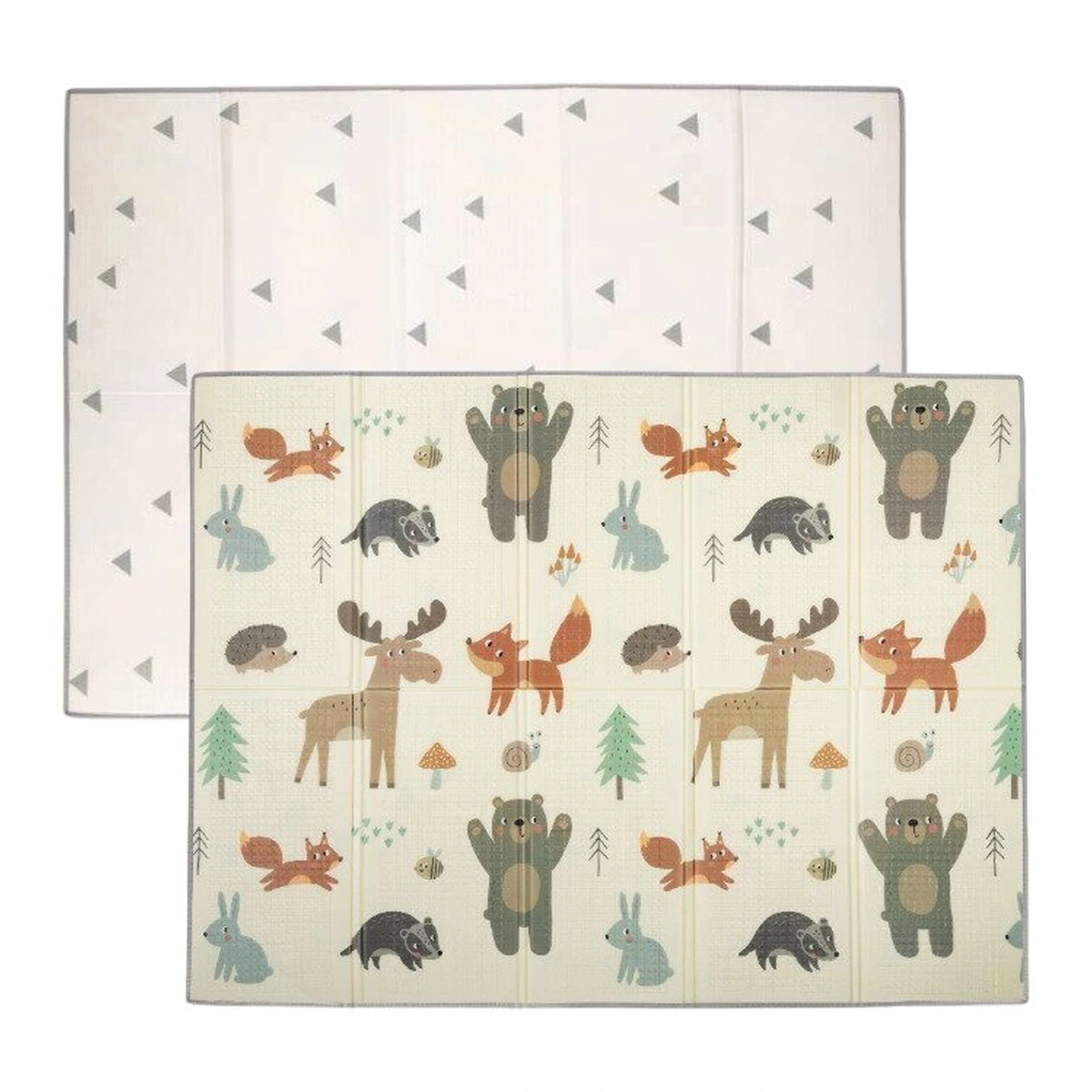 - Covorasul de joaca este realizat din spuma XPE si este acoperit cu folie, ceea ce il face foarte usor de curatat. Datorita compozitiei sale, este potrivit pentru utilizare atat in interior, cat si in exterior. Covorasul este ambalat intr-un sac convenabil, care va permite sa-l luati cu dumneavoastra oriunde.