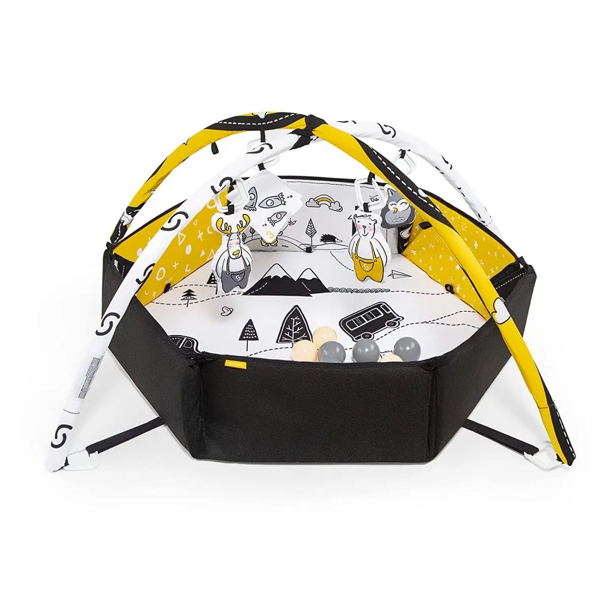 - 3 in 1: salteluta de joaca, spatiu de joaca sigur si atractiv cu bile de plastic prin ridicarea partilor laterale si dupa ce copilul va creste, il veti putea utiliza si drept spatiu de depozitare pentru jucarii