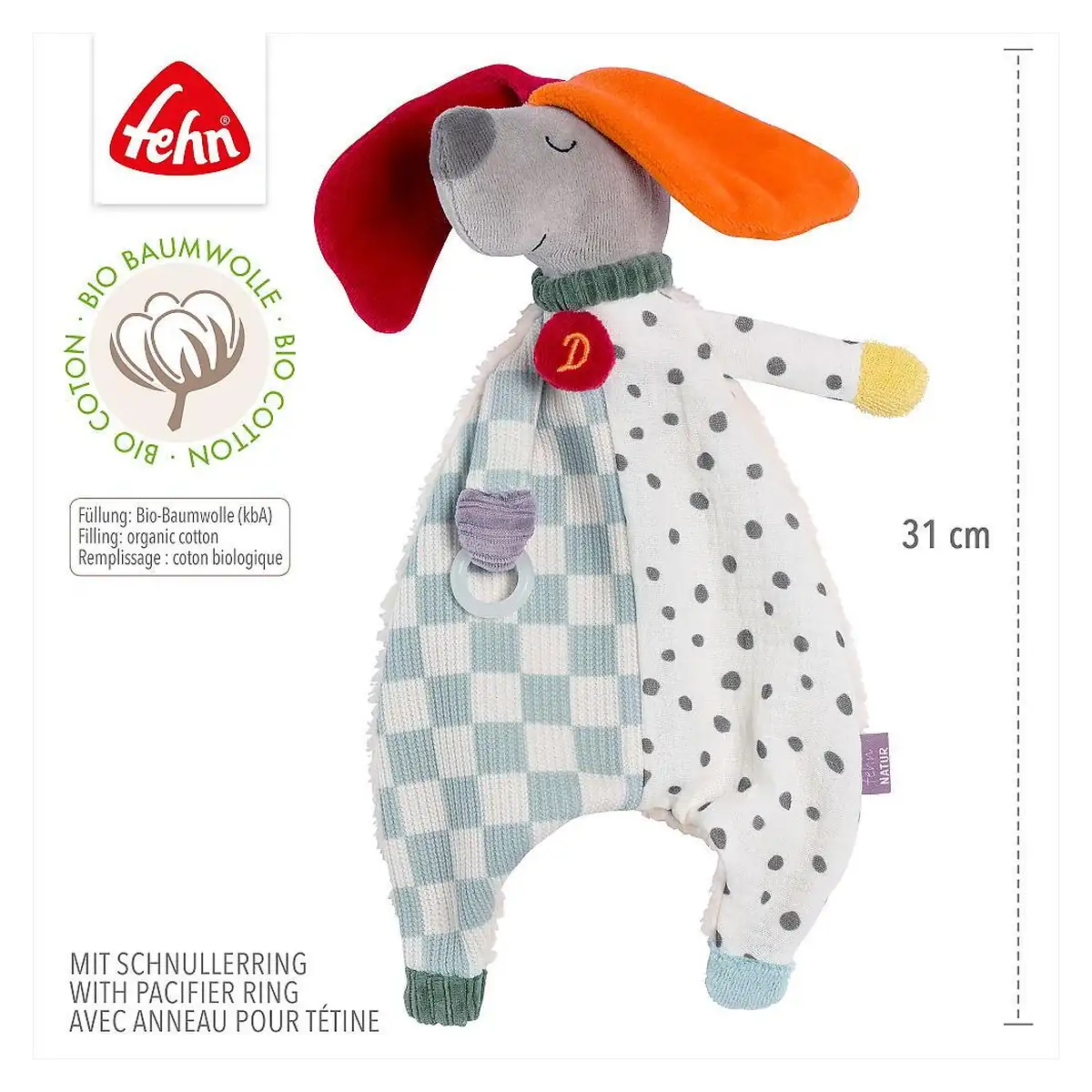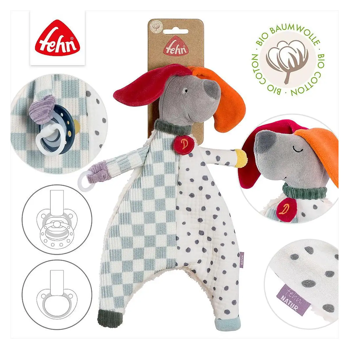 Fehn Jucarie cu inel pentru suzeta - Catelus NATUR