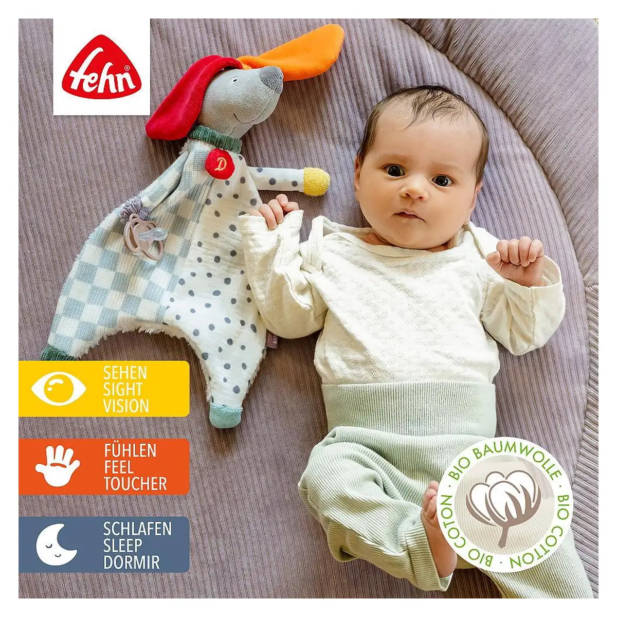 Moale, bland si mereu pregatit sa aline, acest catelus din colectia FehnNATUR® Dog Dotty Collection va fi prietenul perfect pentru bebelusi.