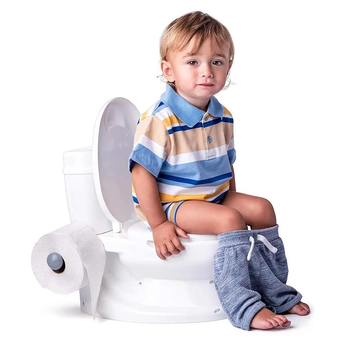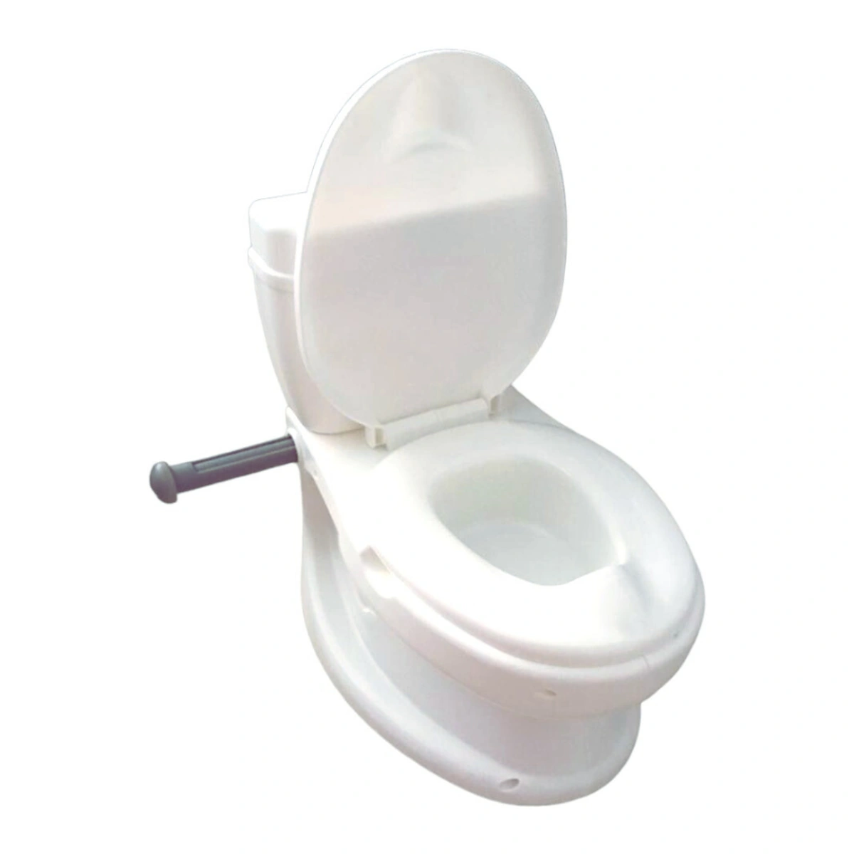Design atractiv, ce imita forma unei toalete reale cu toate elementele necesare: