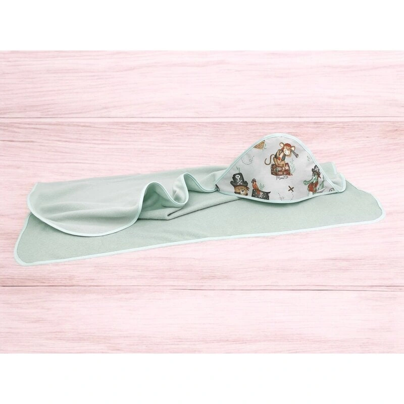 MimiNu Prosop cu gluga, MimiNu, 100x100 cm, bumbac si thermo fleece, Pirates Natural
