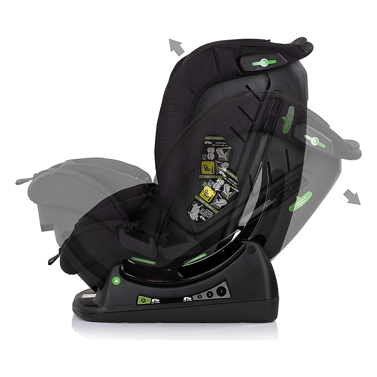 • Scaunul auto este potrivit pentru nou-nascuti si copii cu inaltimea de 40-150 cm, varsta 0-12 ani, greutate aproximativa 0-36 kg: grupele 0+, I, II si III