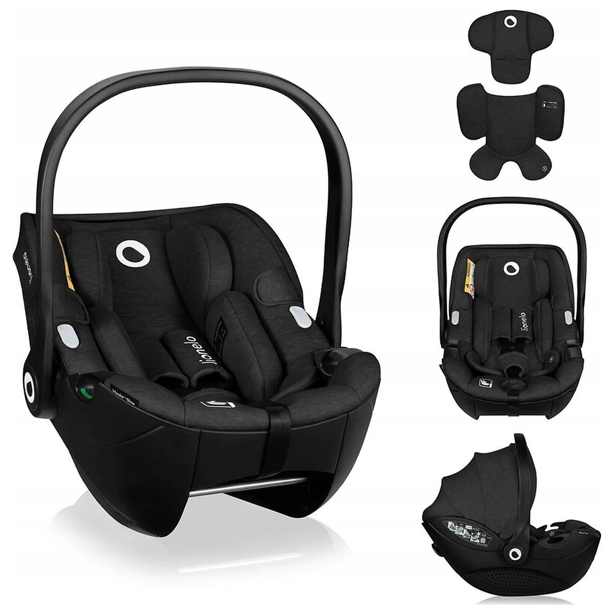 Scoica auto, Lionelo, Moxie, i-Size, 40-87 cm, Tetiera reglabila, intarita cu spuma de memorie, Carcasa ventilata, Din bambus, Protectie avansata, Conform cu R129, Negru