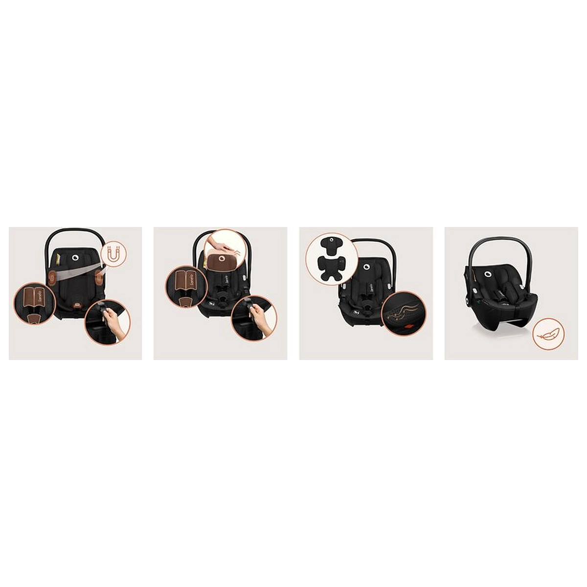 Ajustarea tetierei si a centurilor se face simultan si usor - totul cu o singura miscare.