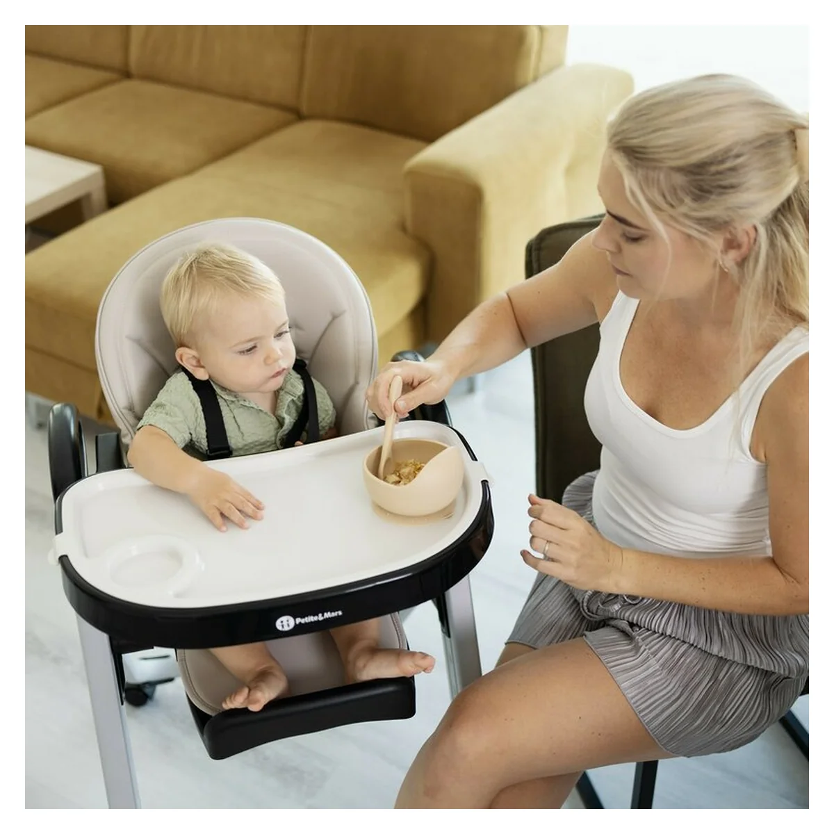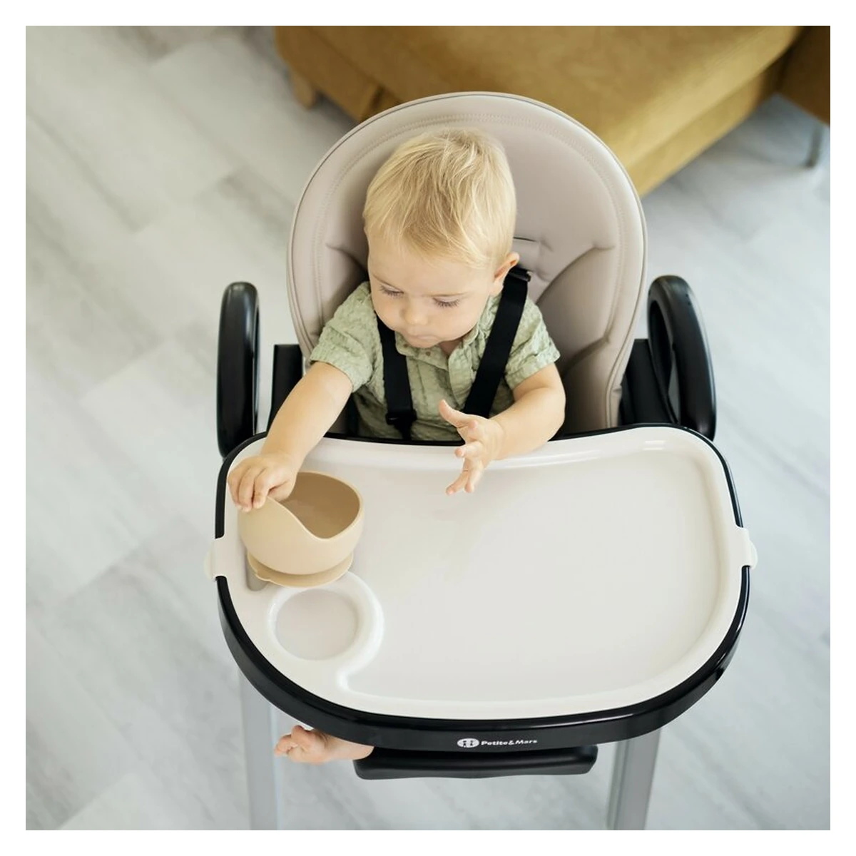 Scaunul de masa Petite&Mars Tasty este conceput pentru a face ora mesei mai usoara si mai confortabila pentru copil.