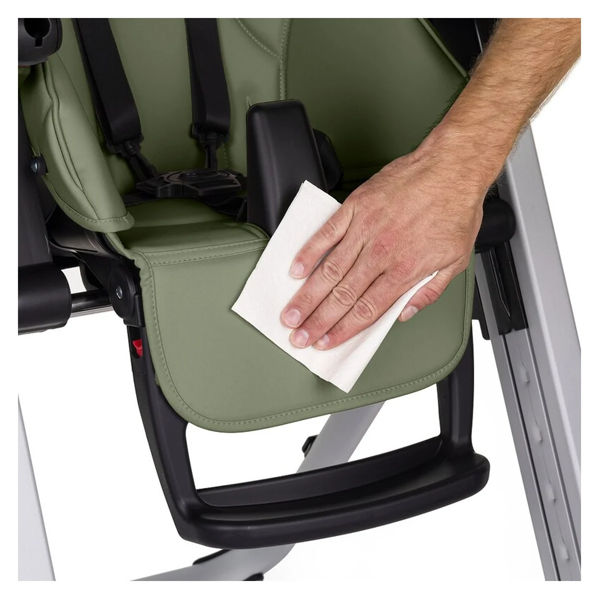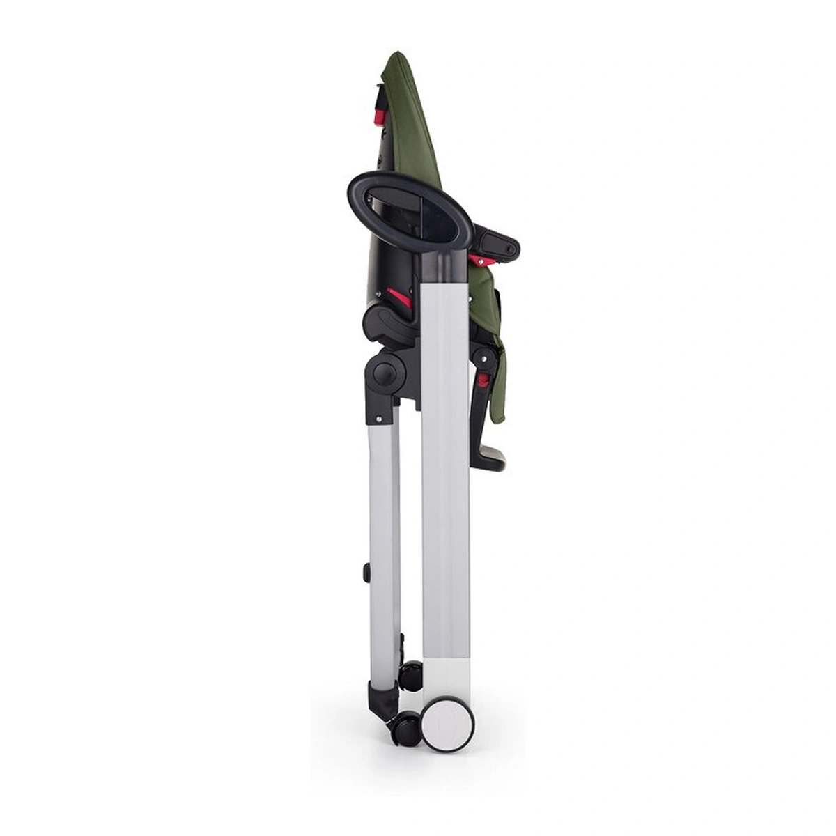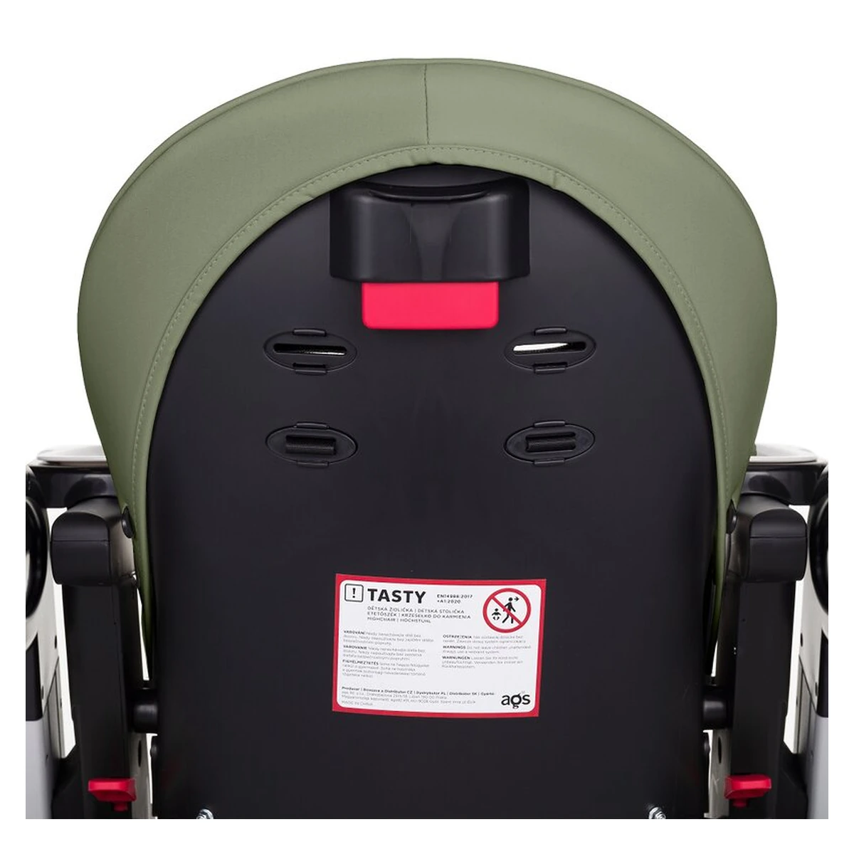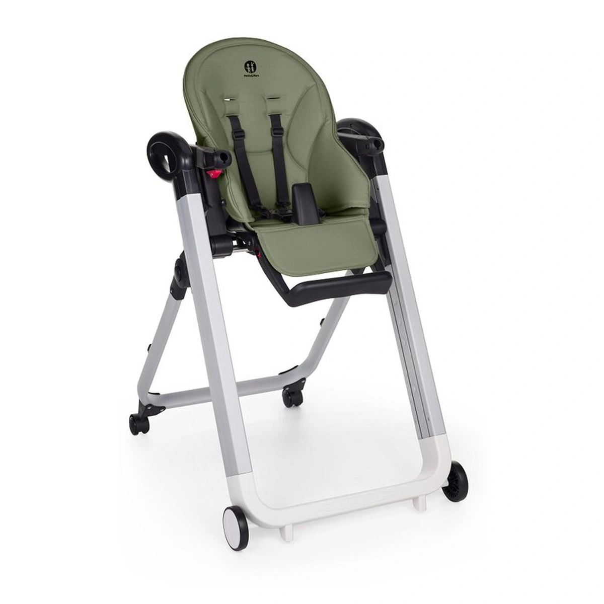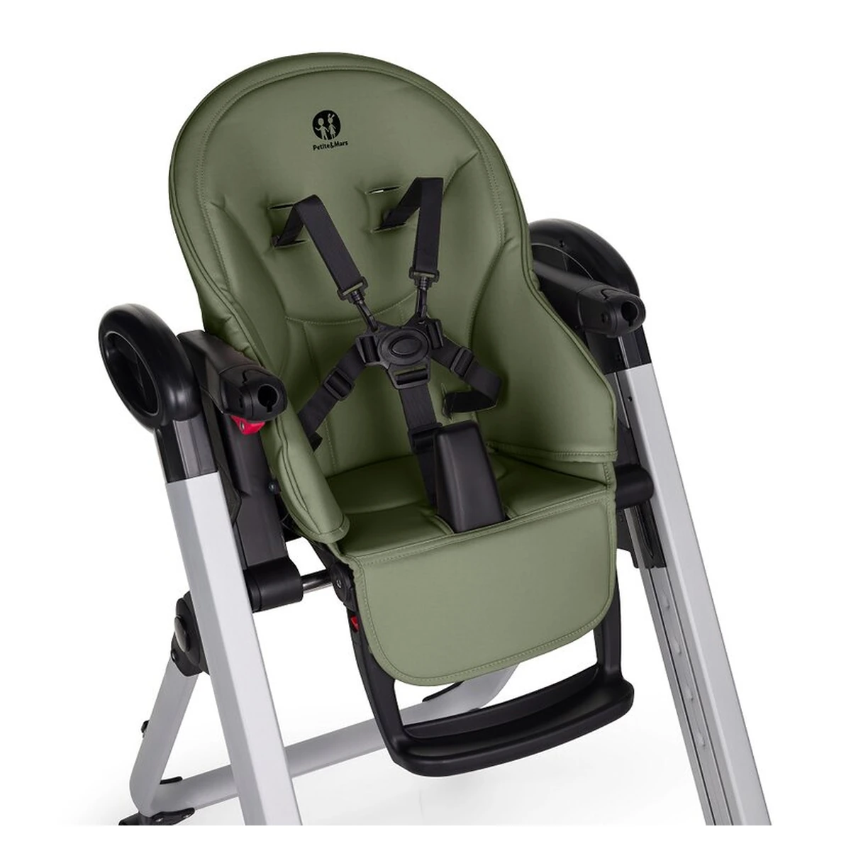 Scaun de masa, Petite&Mars, Tasty, Spatar, suport picioare si tavita reglabile, Cu roti, Mature Olive