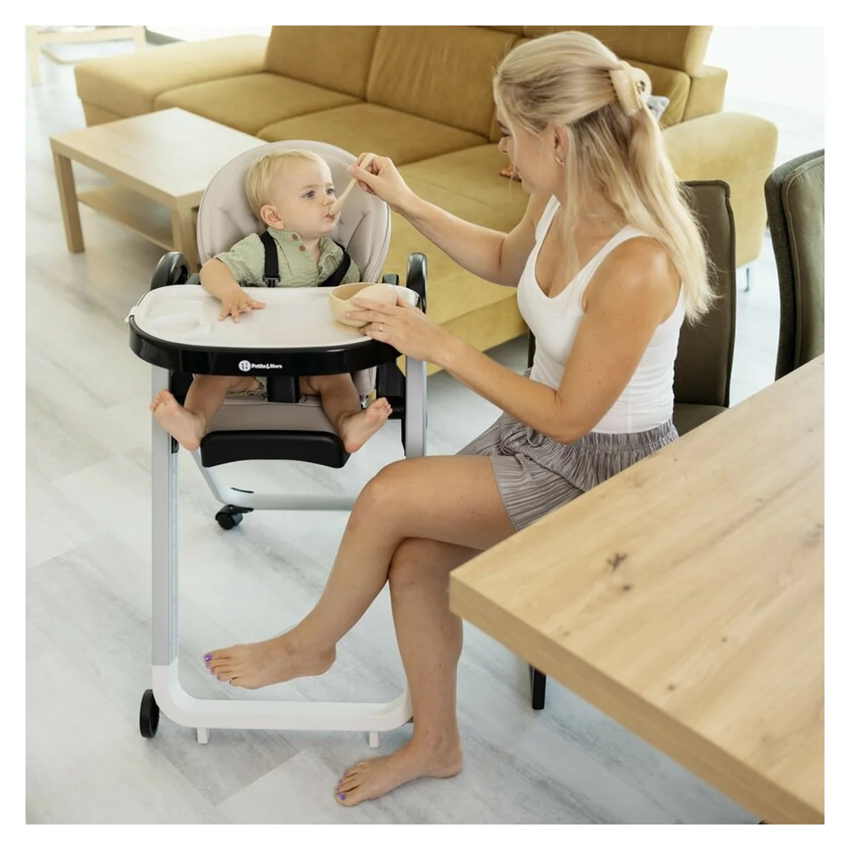 Scaunul de masa Petite&Mars Tasty este conceput pentru a face ora mesei mai usoara si mai confortabila pentru copil.