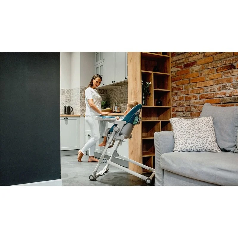 Stocarea scaunului de masa este foarte usoara datorita functiei Easy Stand, care mentine scaunul inalt in pozitie verticala atunci cand este pliat.