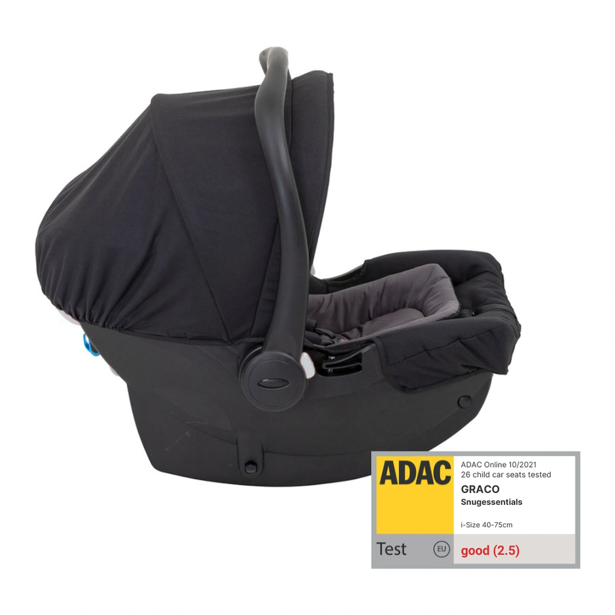 In cadrul testului ADAC, scoica auto Graco SnugEssentials a obtinut calificativul Good (2.5), iar la siguranta, cel mai important criteriu, a obtinut unul dintre cele mai bune scouri luate un scaun auto de pe piata (1.6)