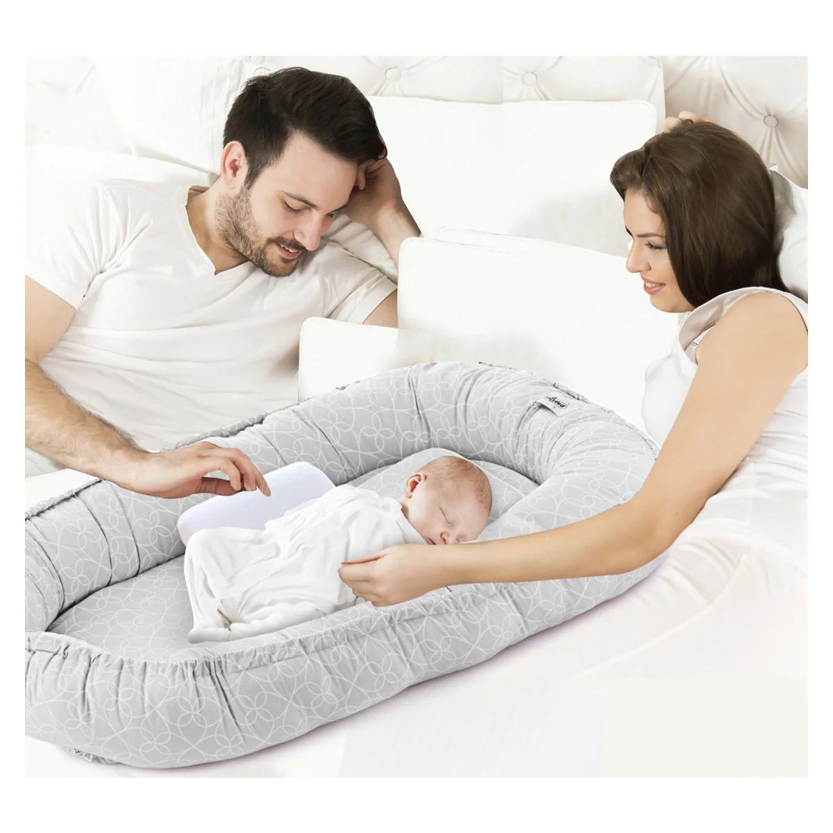 Este confortabil atat pentru bebelus cat si pentru mama, deoarece poate fi asezat in patutul bebelusului sau in orice loc preferat : tarc de joaca, pat adult(ca un loc de dormit sigur in patul parintilor), podea sau chiar in calatorii ca si patut de calatorie.
