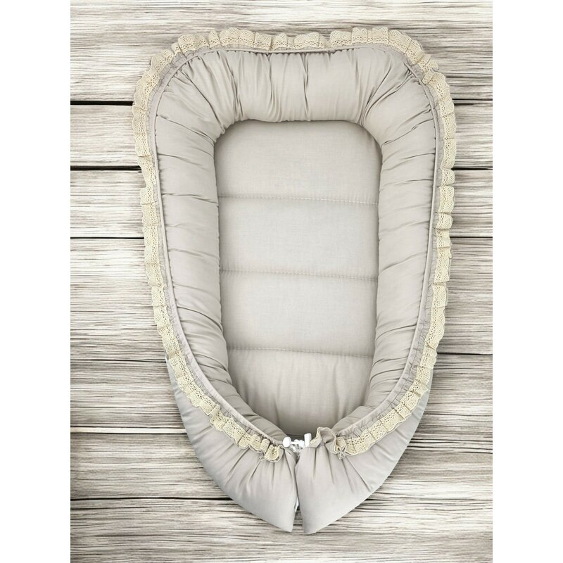 Coconul pentru bebelusi cu volanase decorative finisate cu dantela este creat special pentru a oferi micutului tau sentimentul de siguranta si apropiere, asemanator cu cel din burtica mamei ✨.