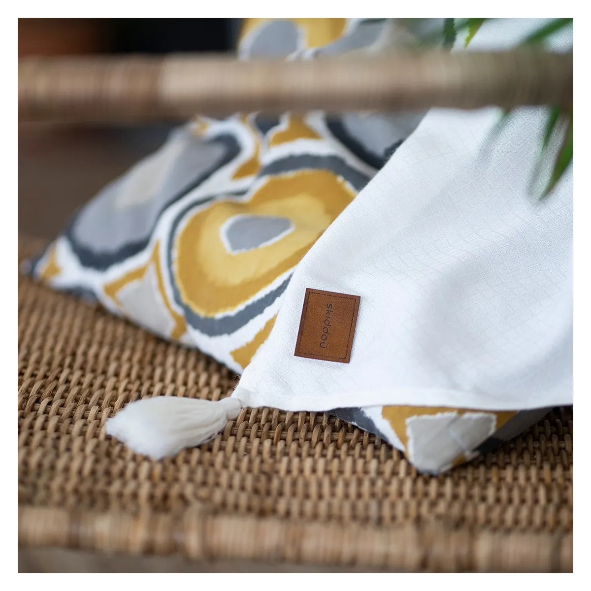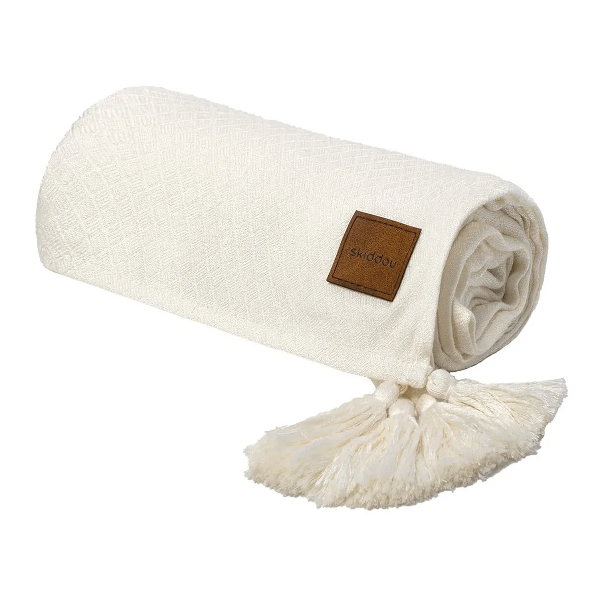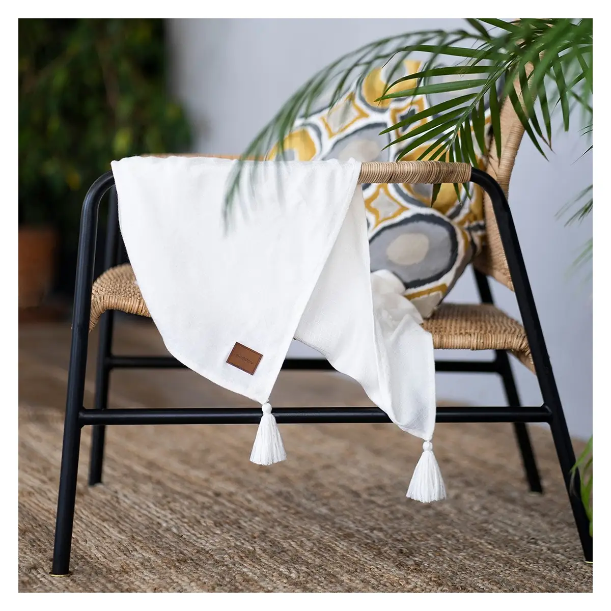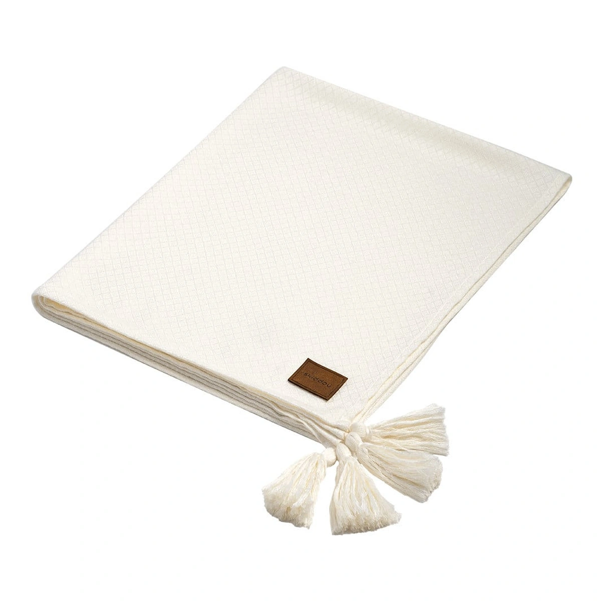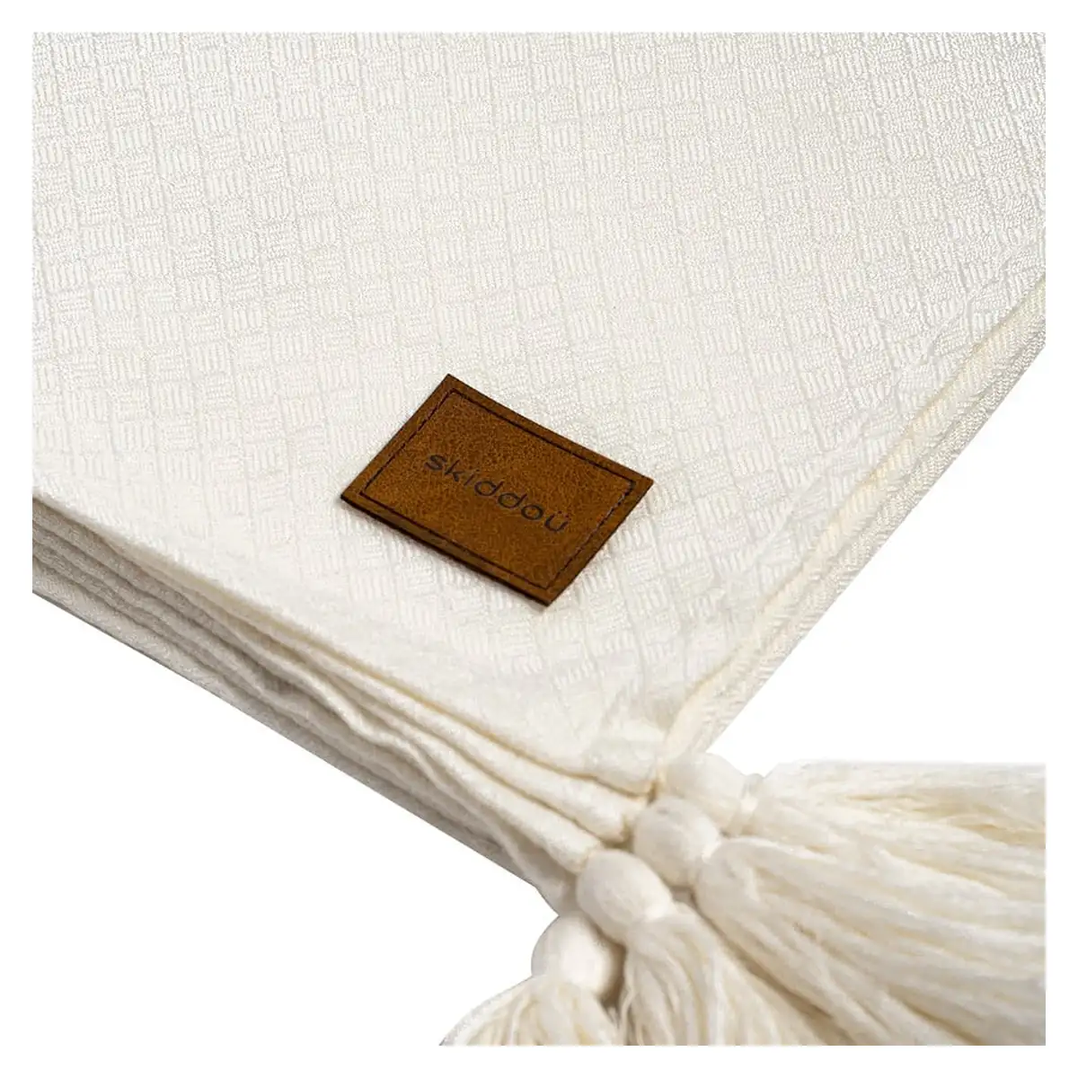 - patura va atrage cu siguranta persoanele care cauta ceva deosebit, aceasta fiind o combinatie de design scandinav cu o atmosfera boho. Tesatura cu structura 3D si ciucuri la colturi face ca paturica sa fie este universala