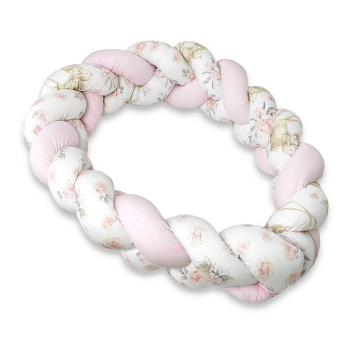 MimiNu Protectie laterala pentru patut bebe, Tip Bumper impletit, Din bumbac, Lungime 220 cm, Sweet Deer Pink