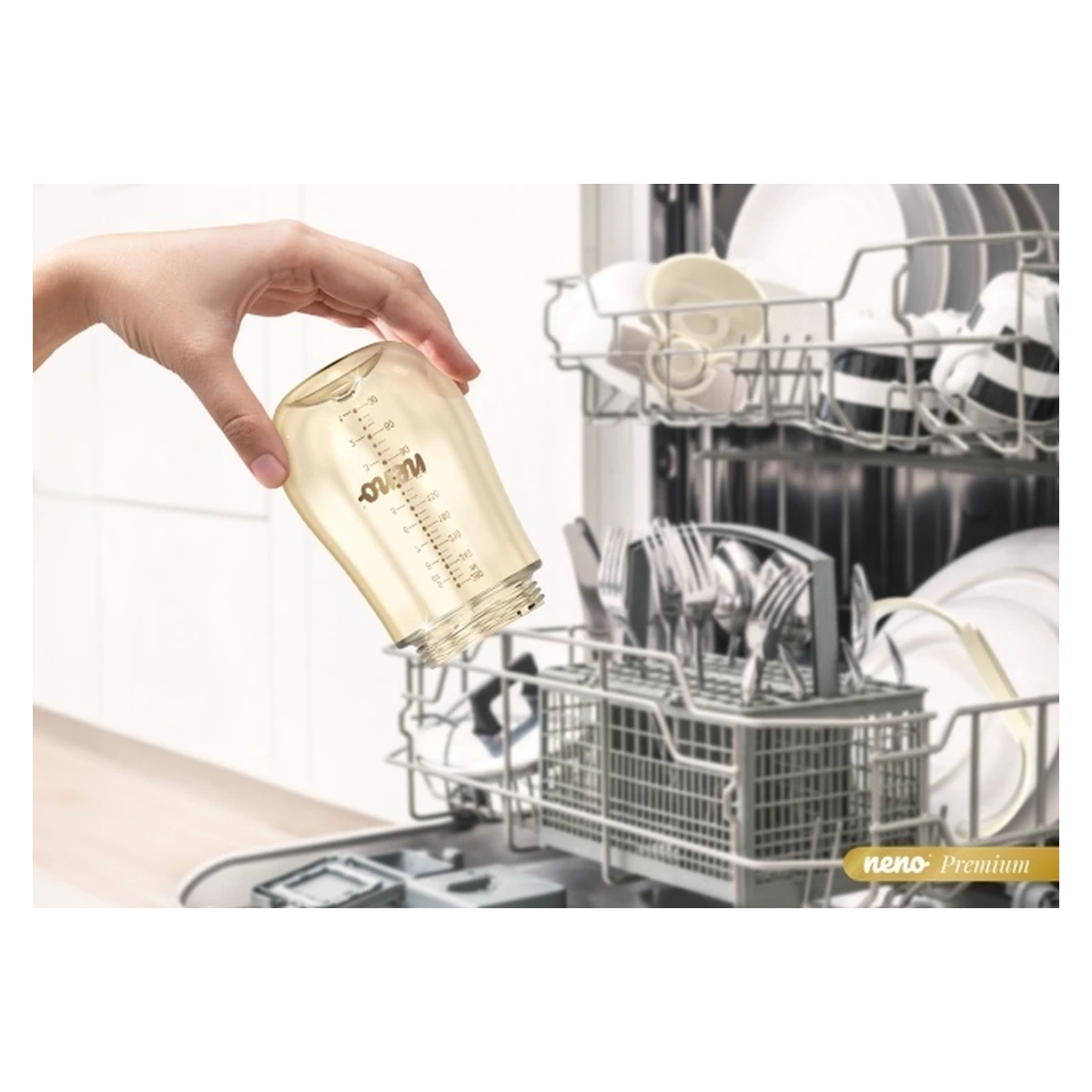 Curățarea bidonului Neno Mio 2 este extrem de simplă și practică. Tot ce trebuie să faci este să îl demontezi și să pui toate componentele în mașina de spălat vase.