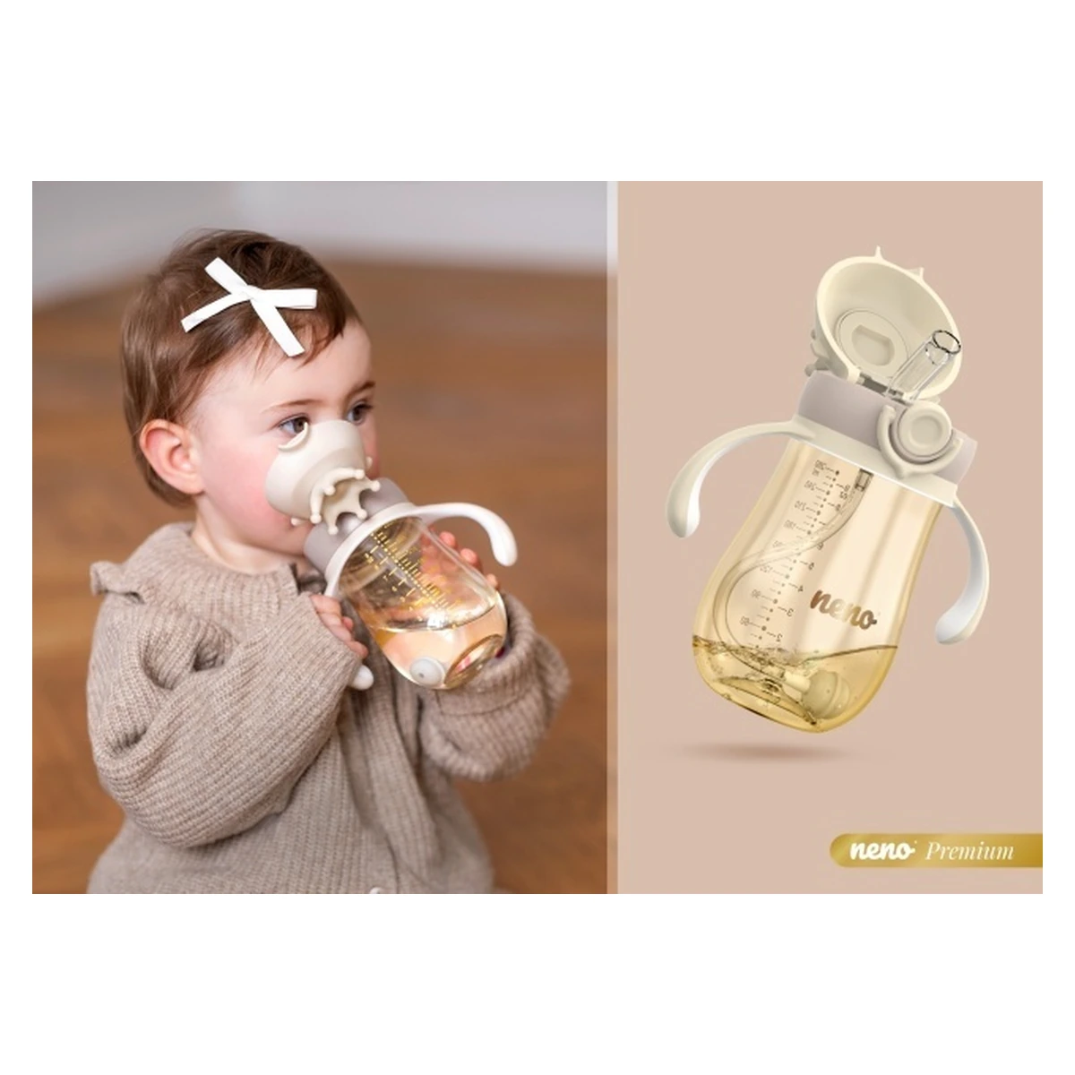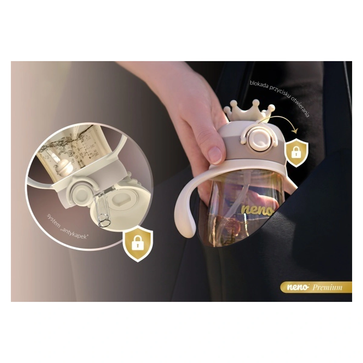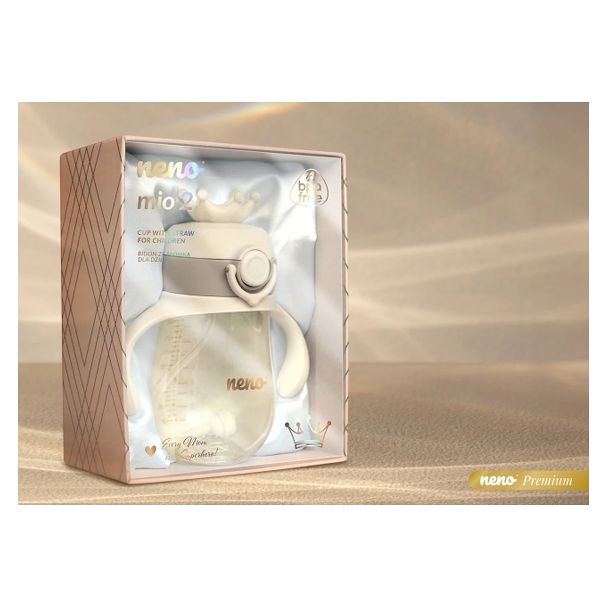 Neno Mio 2 este un înlocuitor practic pentru biberon, fiind totodată un instrument excelent pentru a învăța copilul să bea independent. Bidonul este etanș și rezistent la impact, fiind dotat cu un pai cu greutate, care permite copilului să bea din orice unghi.
