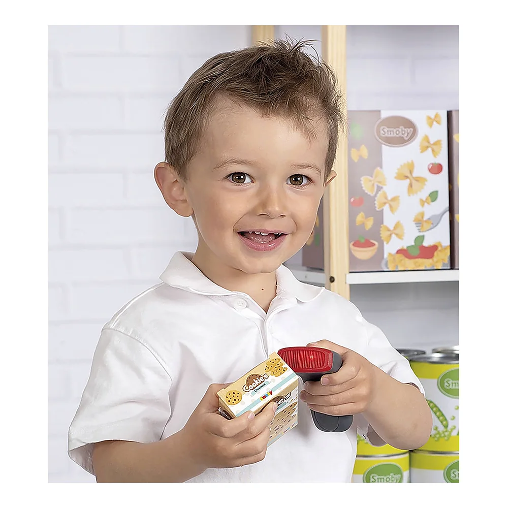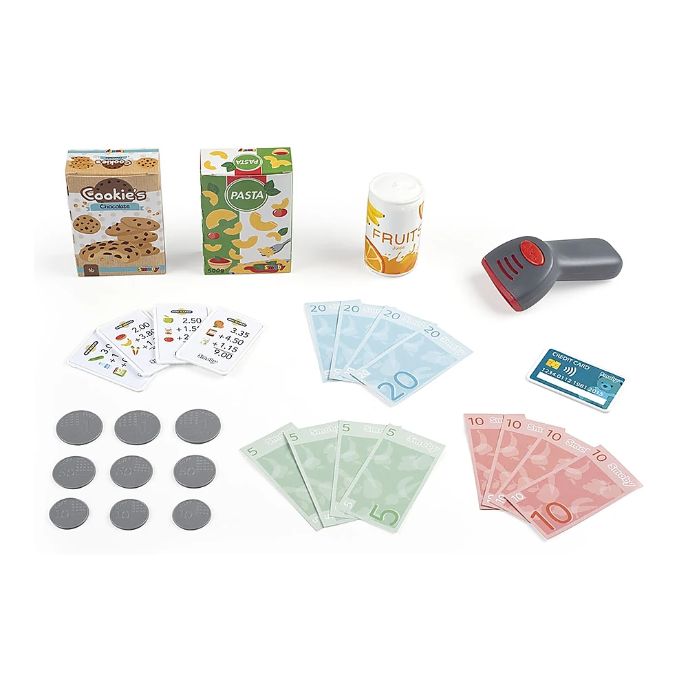 • Setul include 30 de accesorii, inclusiv monede si bacnote, un scanner, 4 chitante, un card, 2 pachete de carton, o cutie de plastic